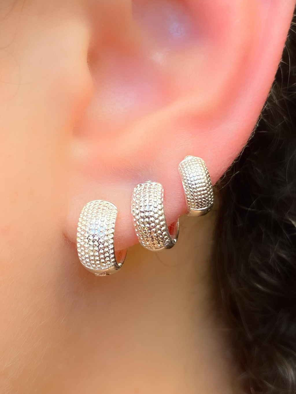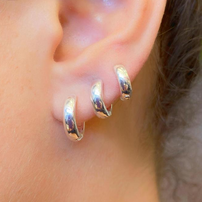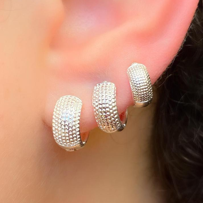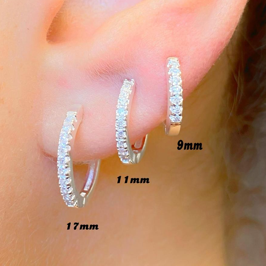 Trio de Argolas Prata Feminina kit Cravejadas em Pedras de Zircônias Ponto de Luz 16mm 15mm 14mm 13mm 12mm 11mm