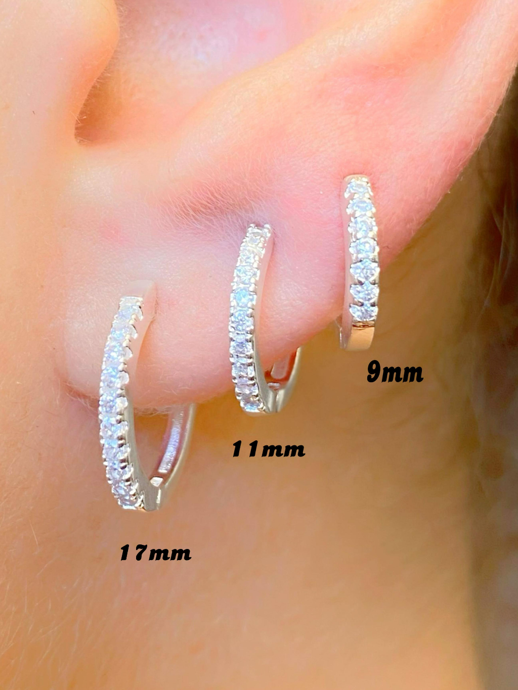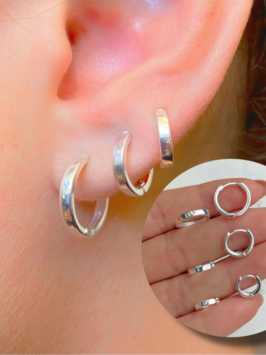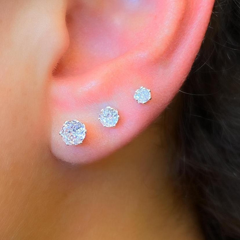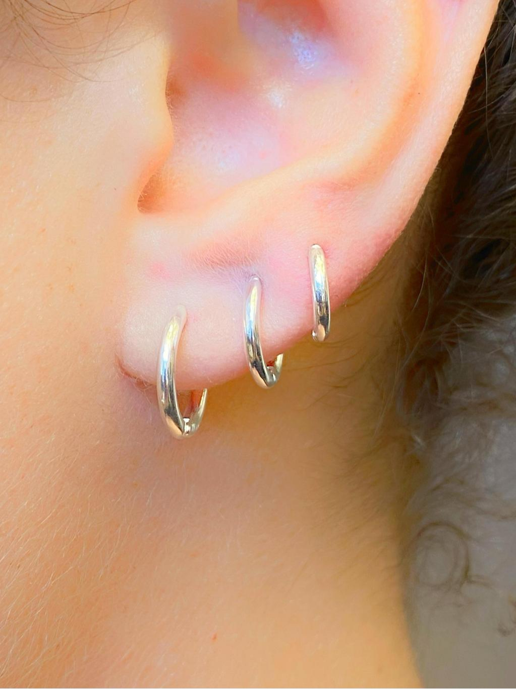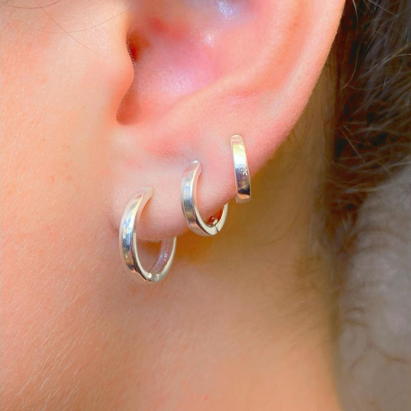 Trio de Argolas Prata 925 Lisa Cravejada Ponto de Luz Kit Feminino 3 Pares Brinco Click