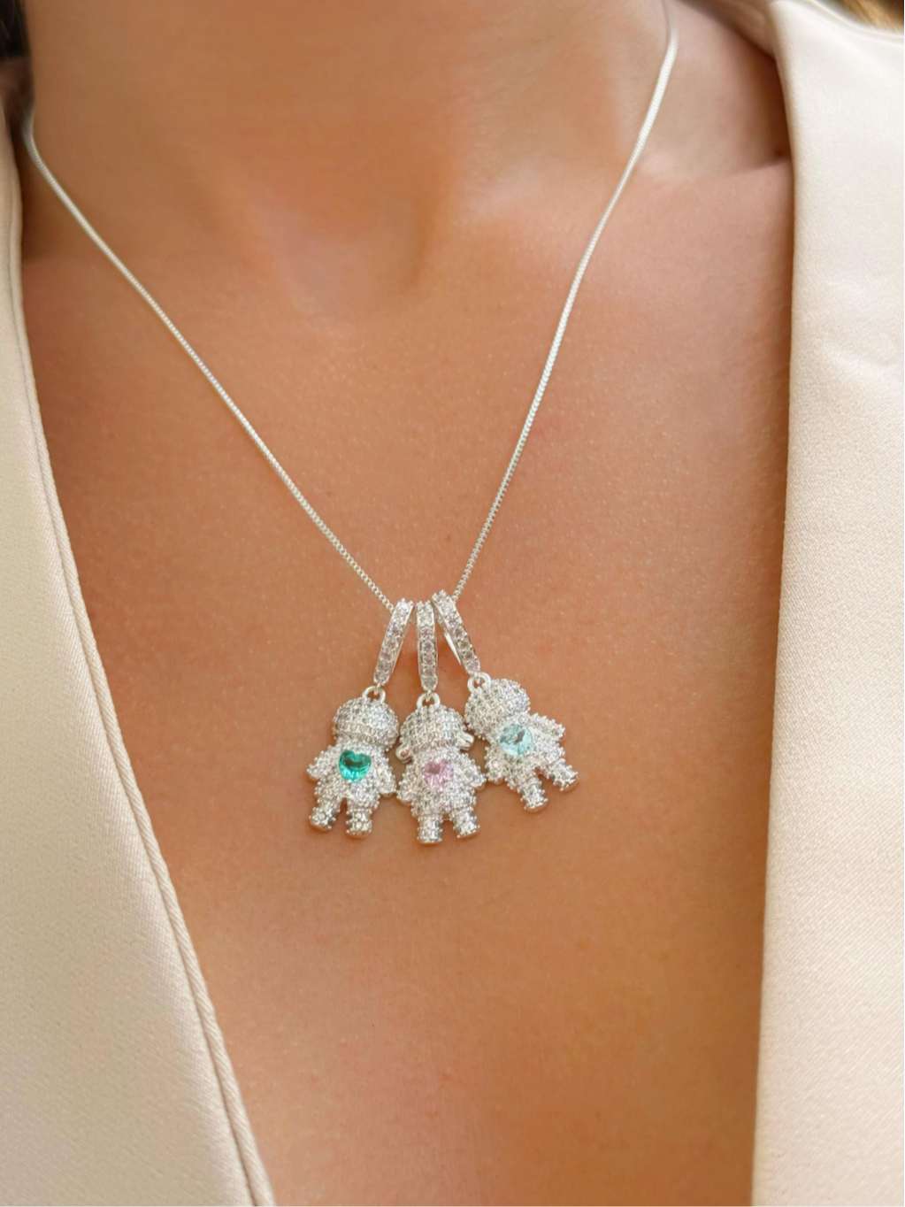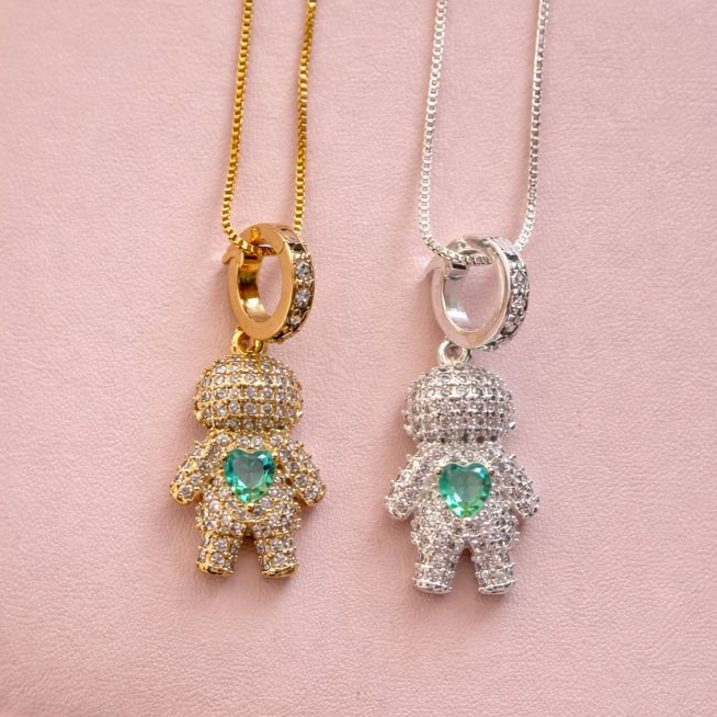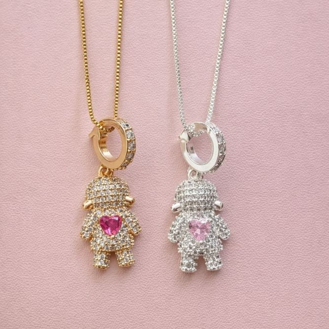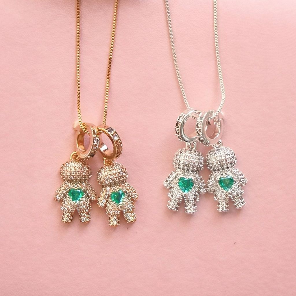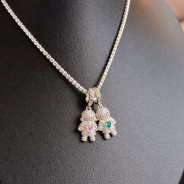 Colar Filhos Pingente Menino/Menina com Pedras Feminino Prata Ouro 18k