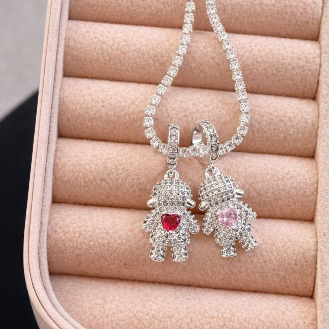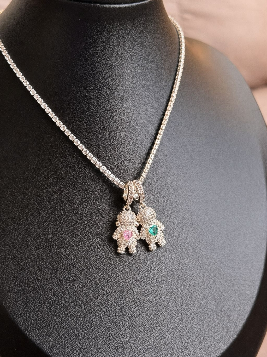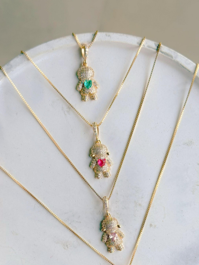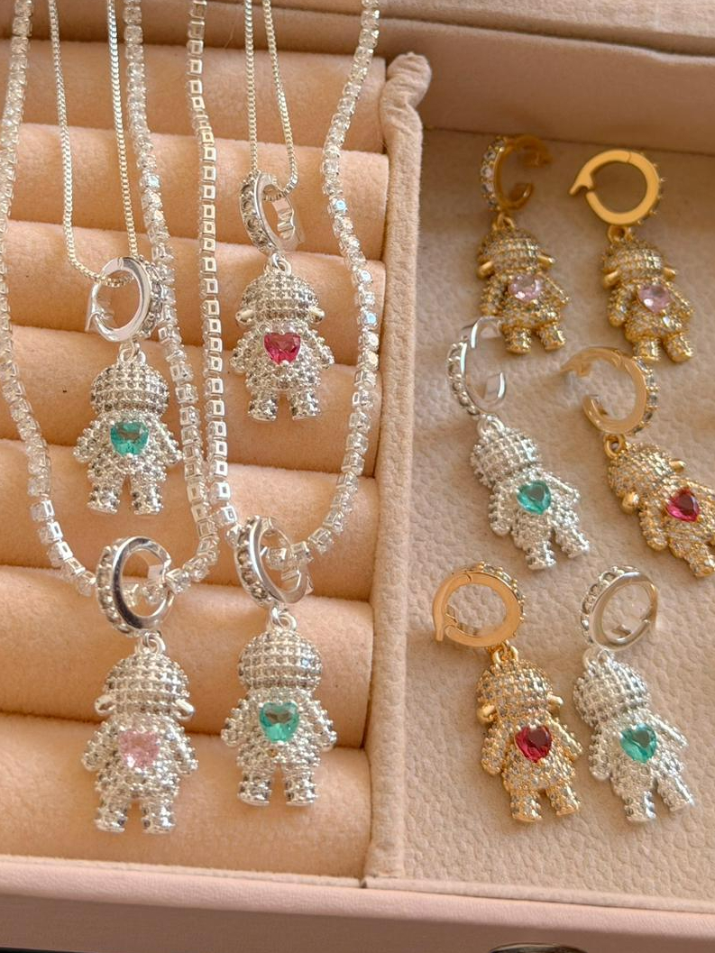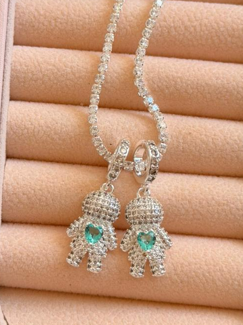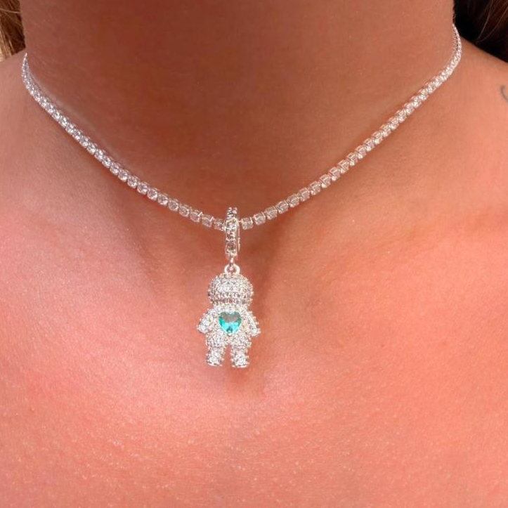 Colar Filhos Pingente Menino/Menina com Pedras Feminino Prata Ouro 18k