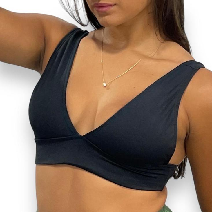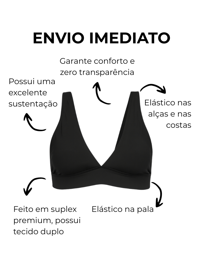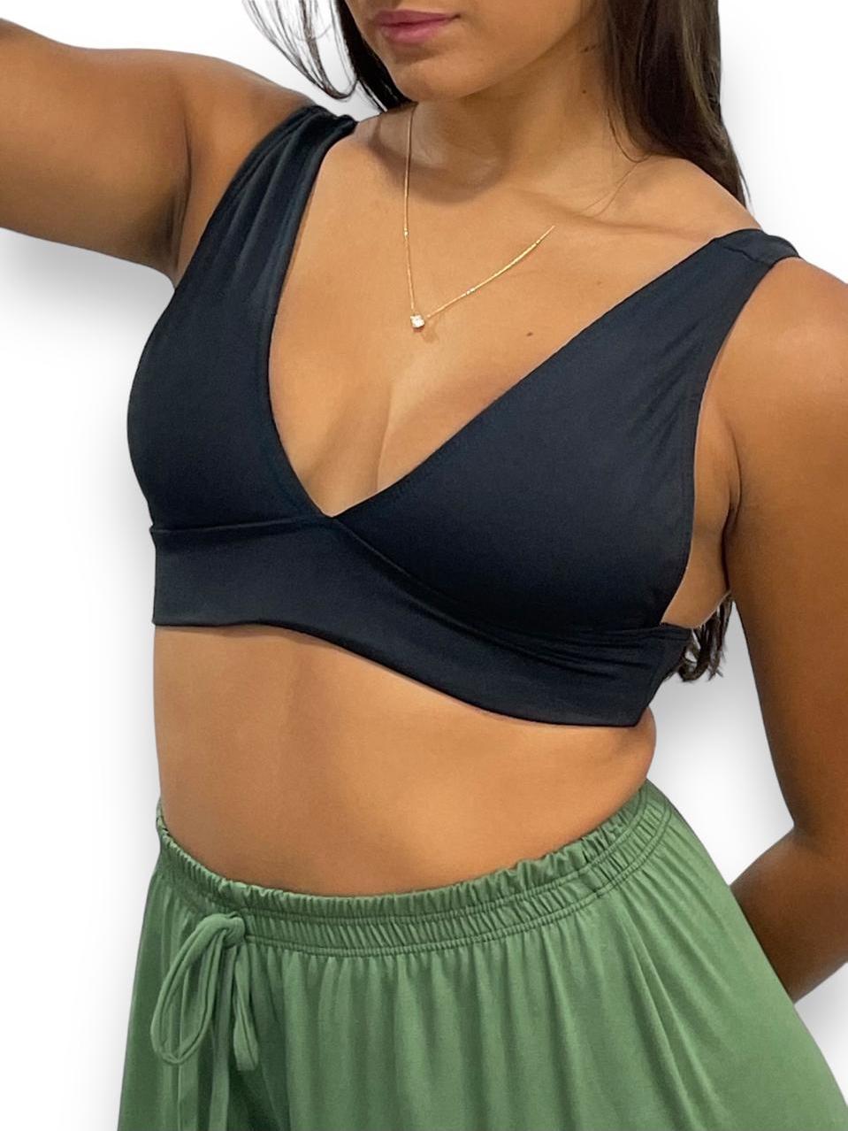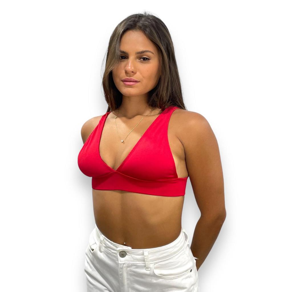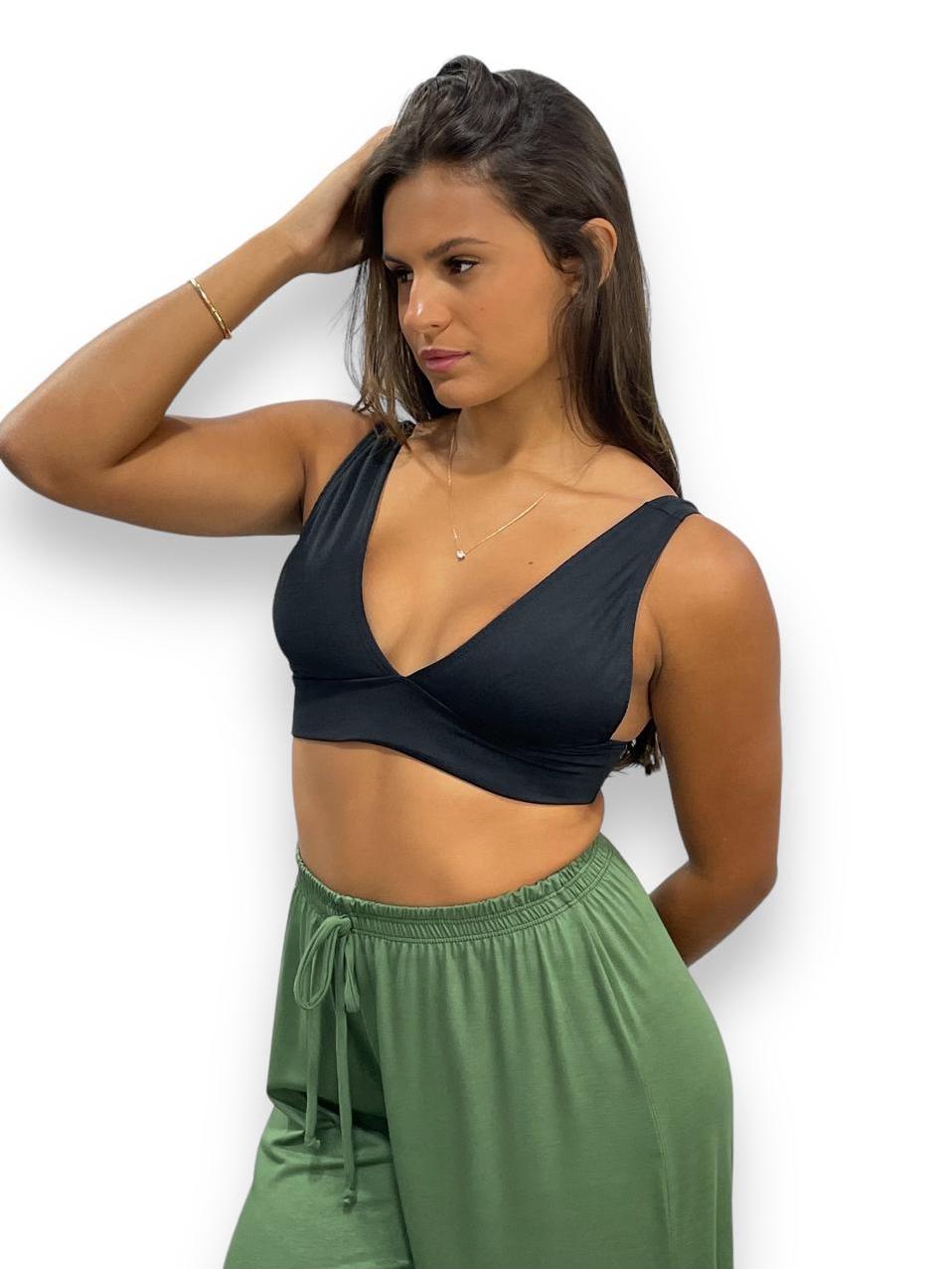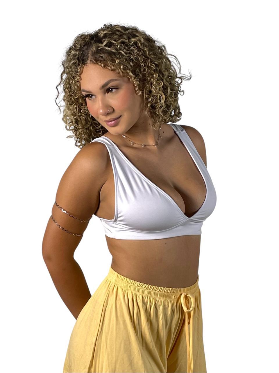 Top Cropped Feminino Alça Grossa Decote V Estiloso Suplex Premium Tecido Duplo Duda
