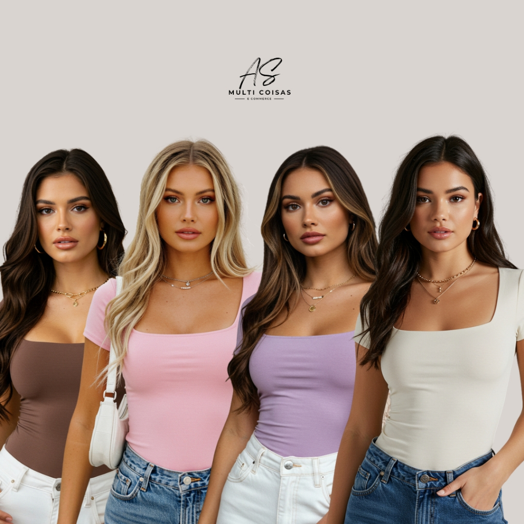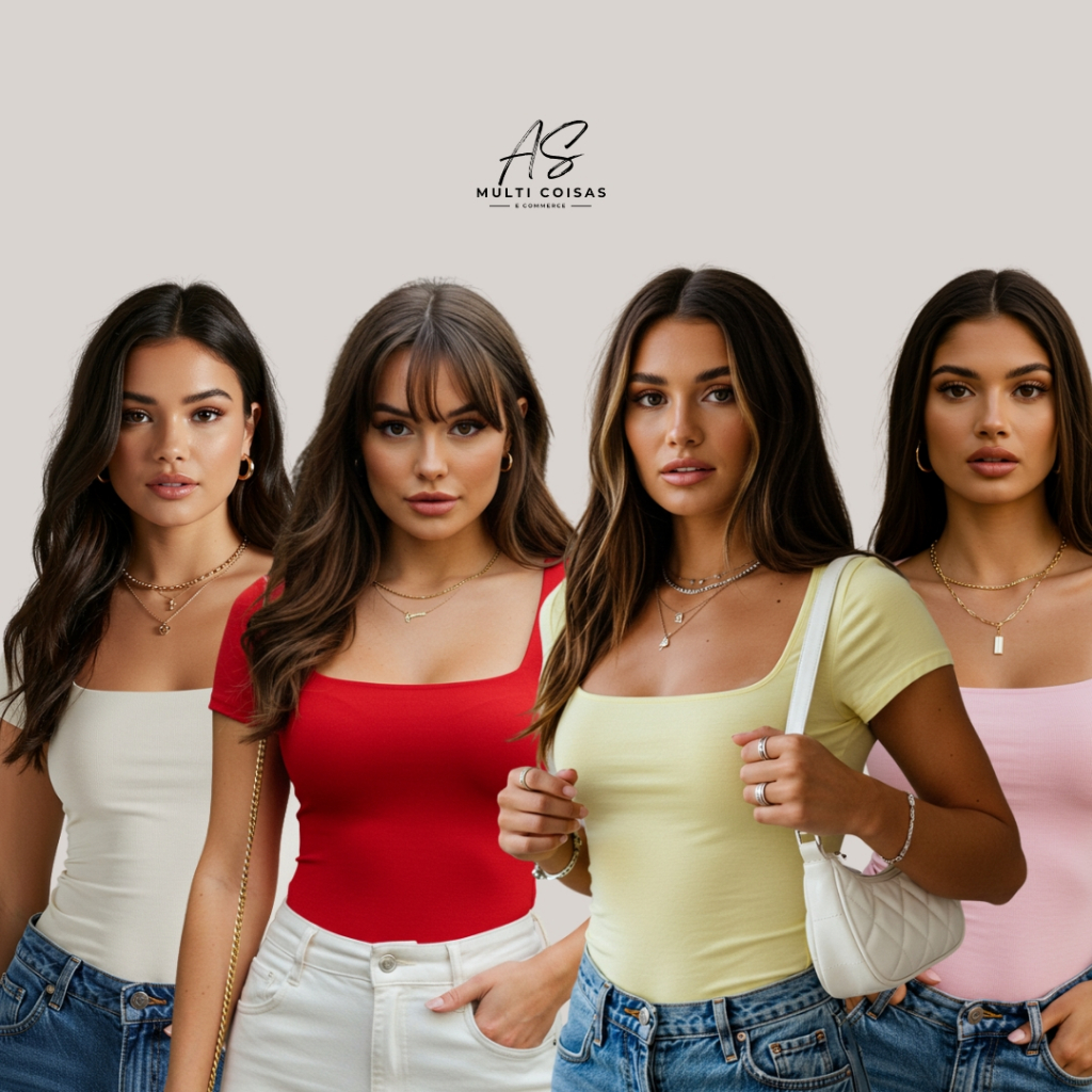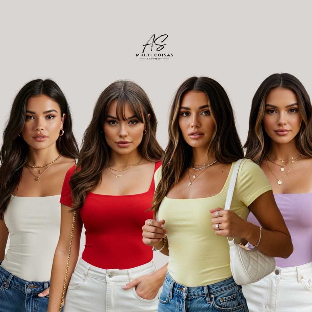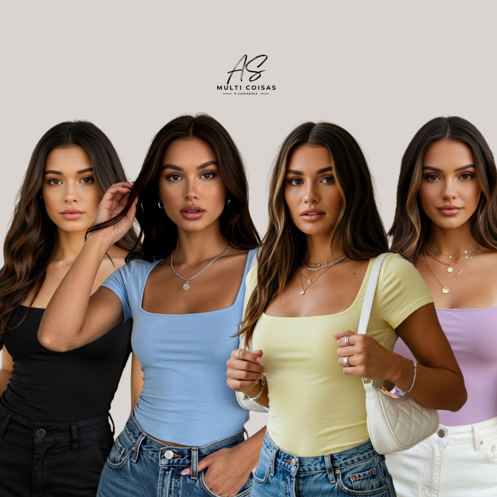 KIT COM 4 BLUSINHA BABY LOOK VERÃO TENDÊNCIA BASICA NO TECIDO SUPLEX DIA A DIA