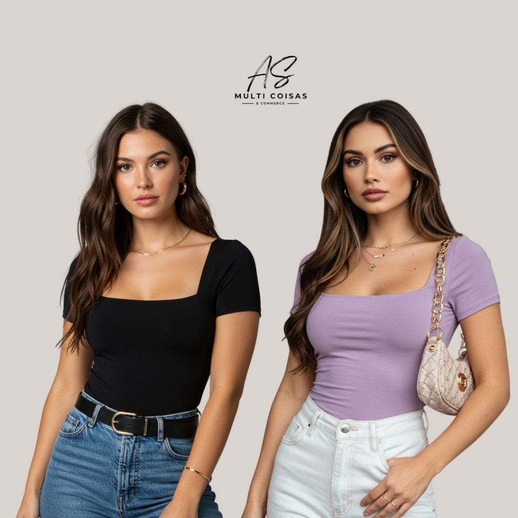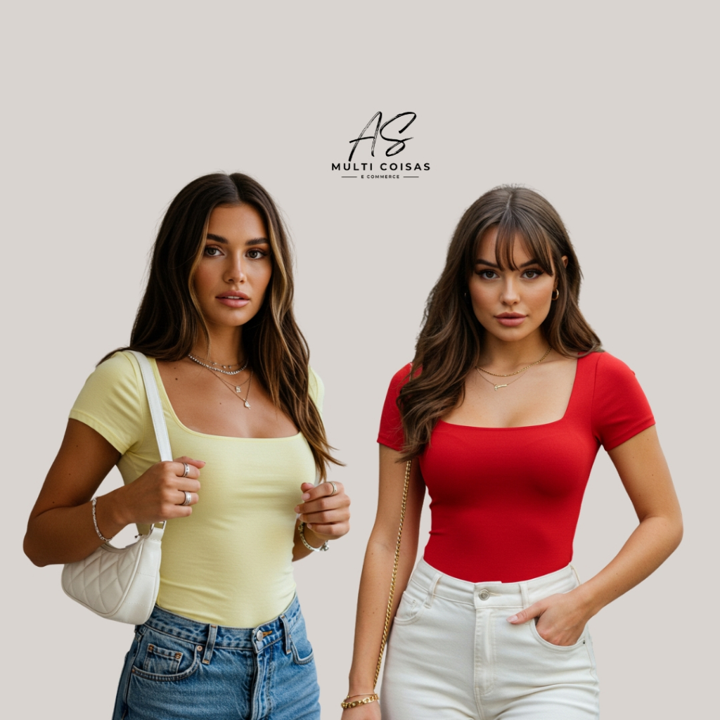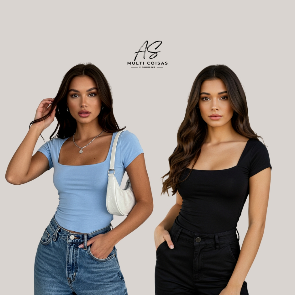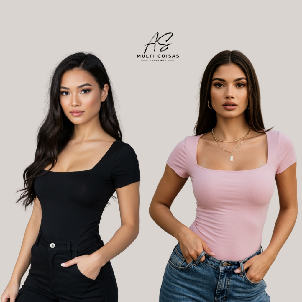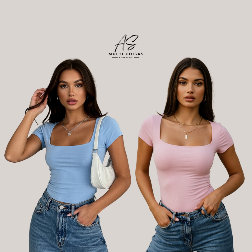 KIT COM 2 BLUSINHAS BABY LOOK BÁSICAS COM DECOTE QUADRADO VARIAS CORES VERÃO