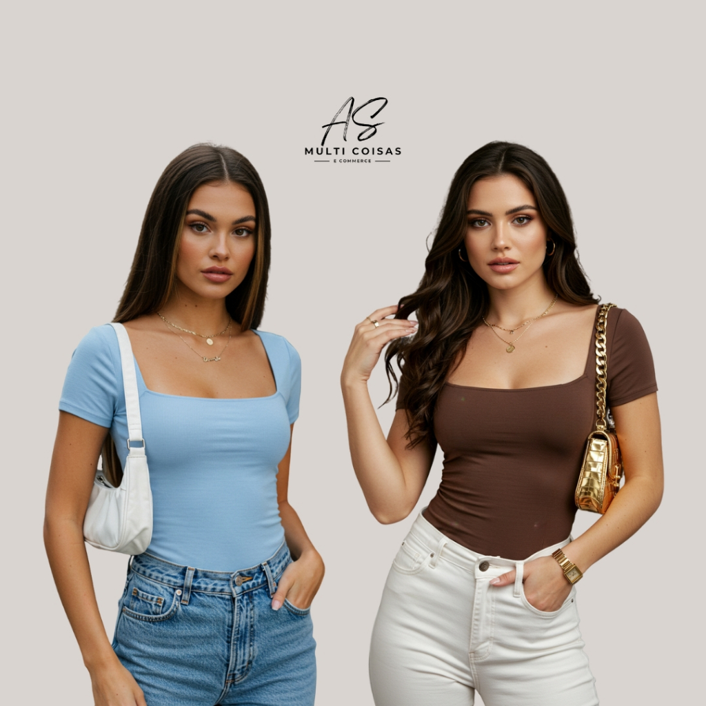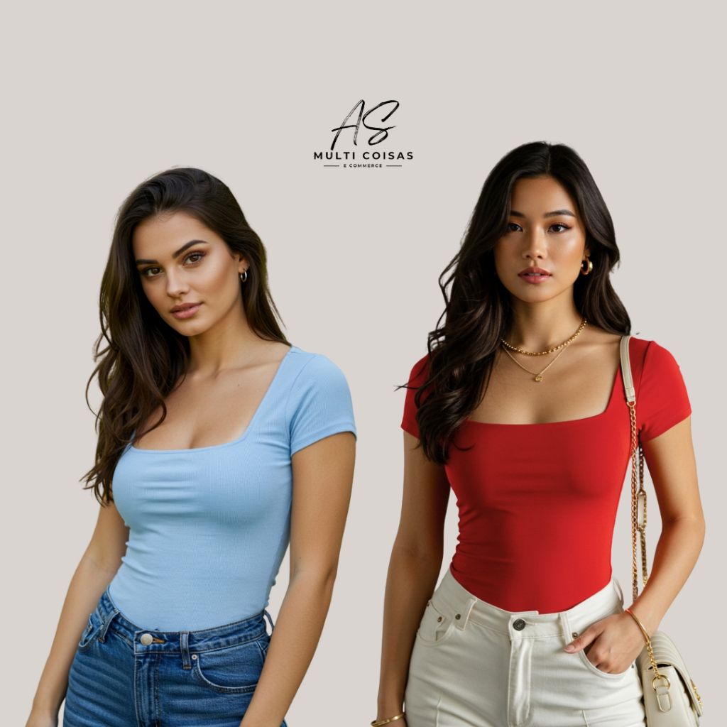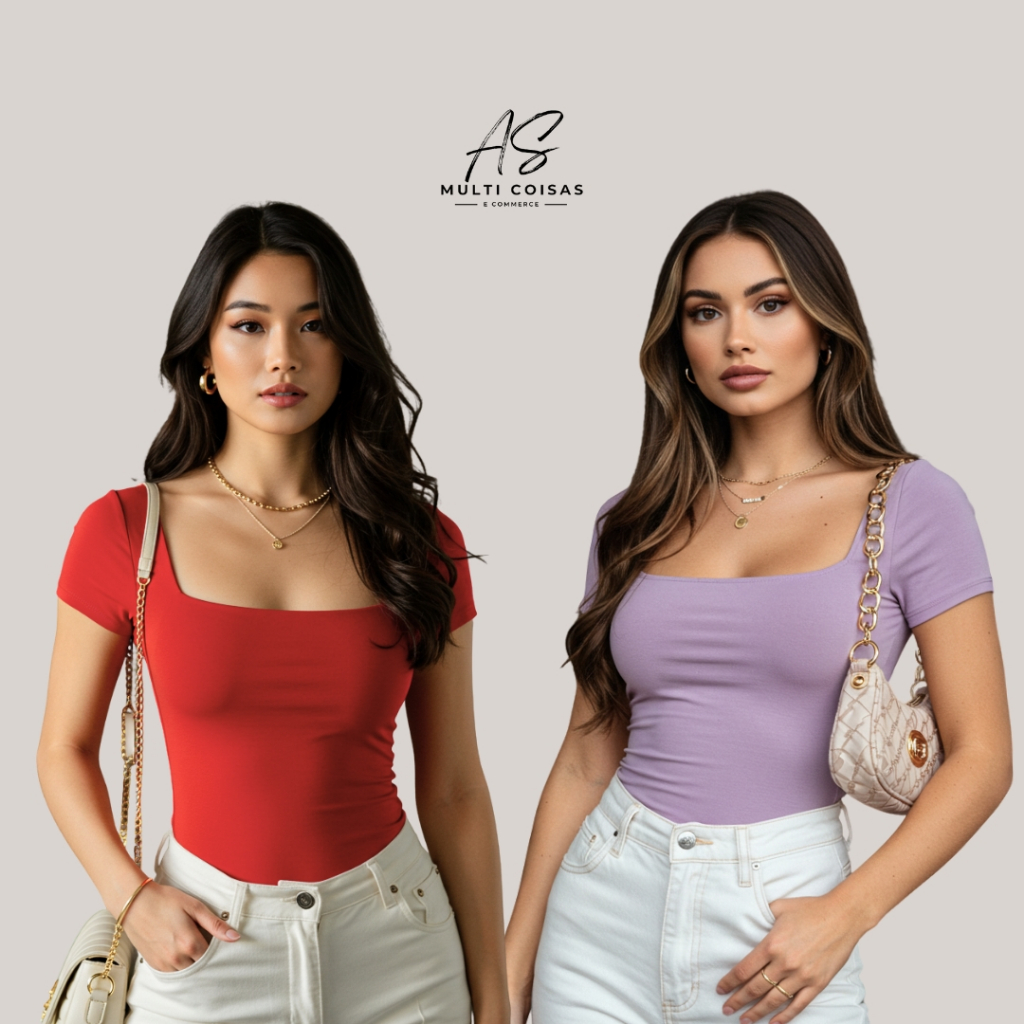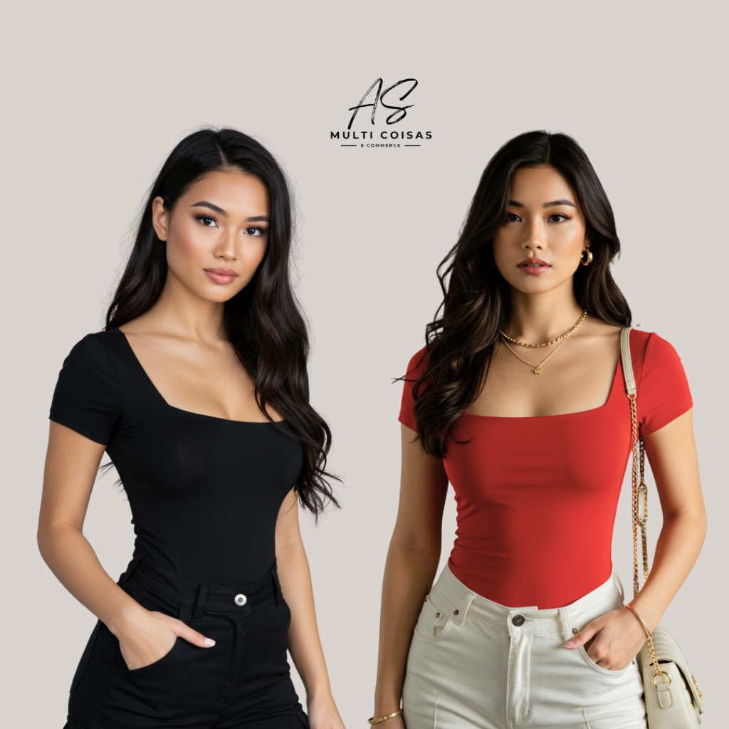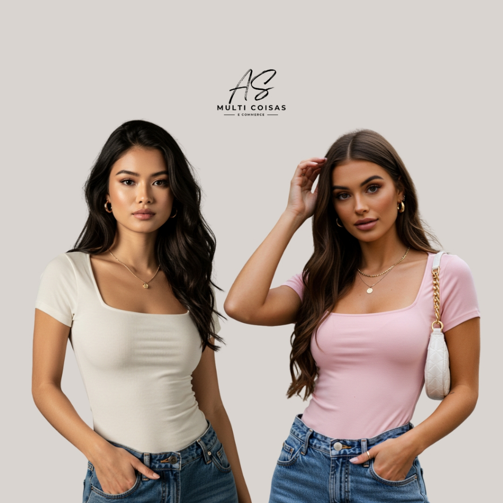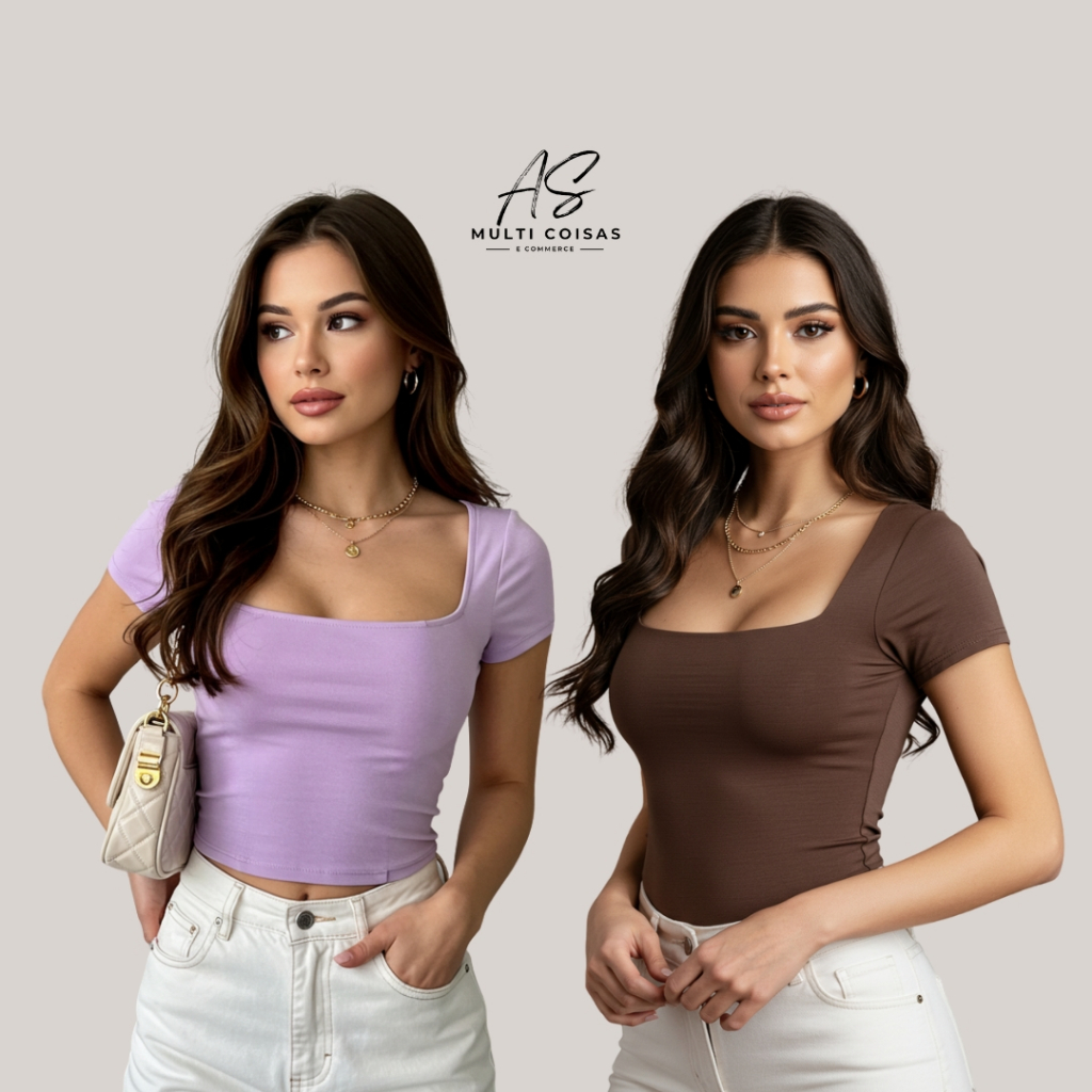 KIT COM 2 BLUSINHAS BABY LOOK BÁSICAS COM DECOTE QUADRADO VARIAS CORES VERÃO