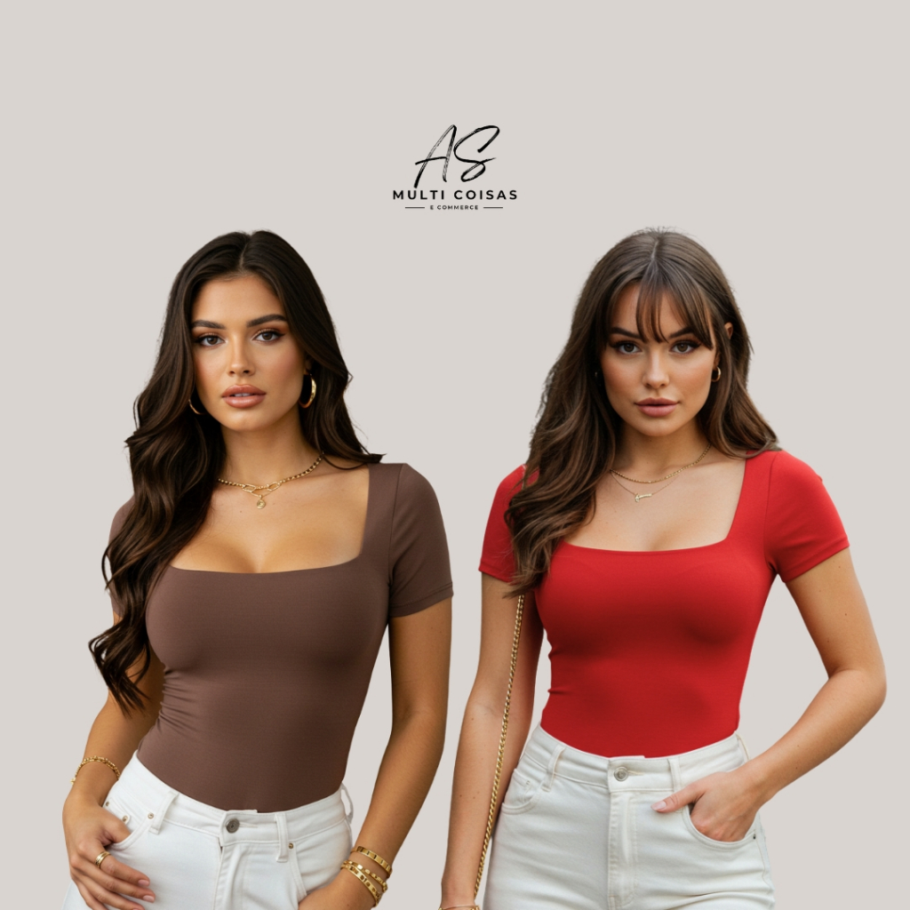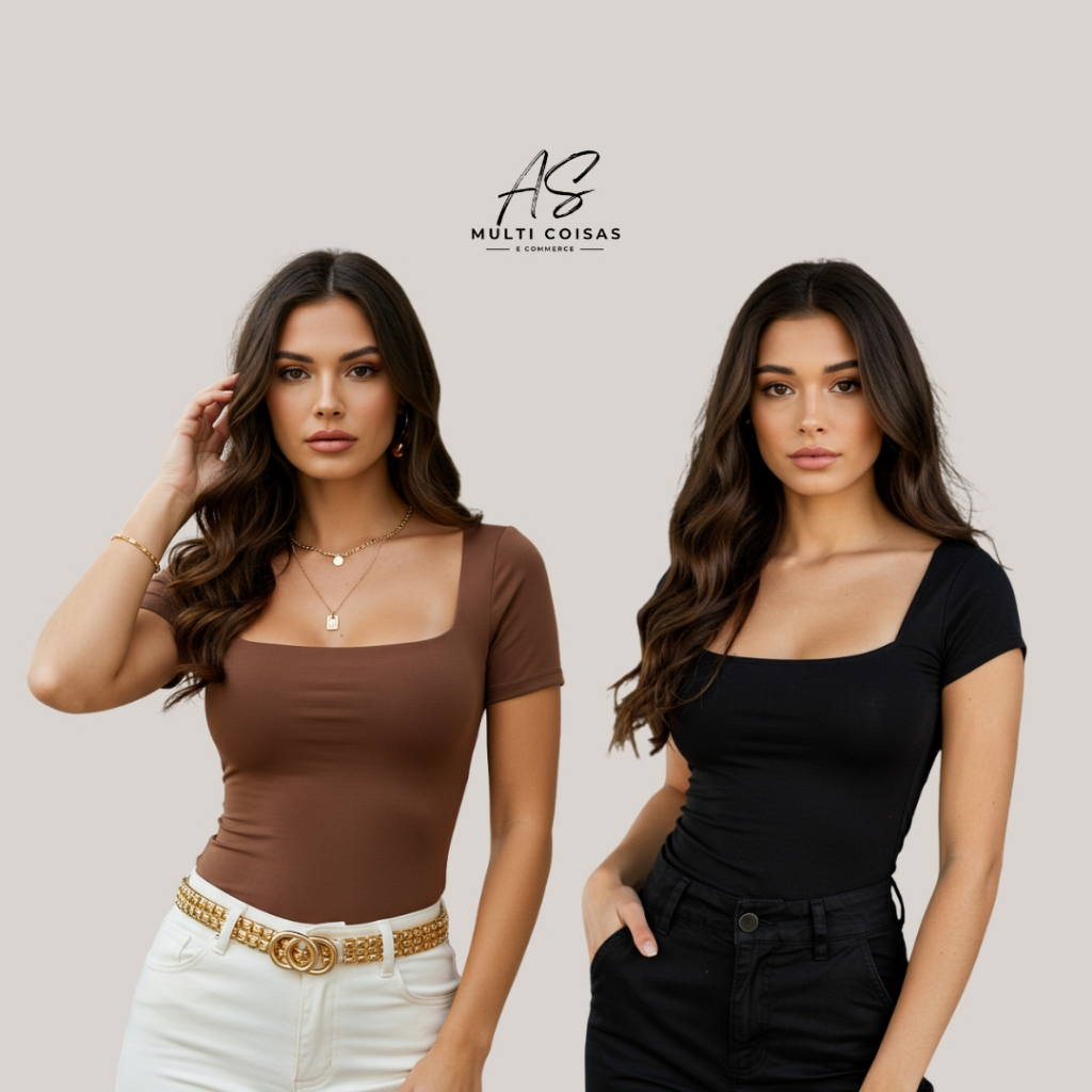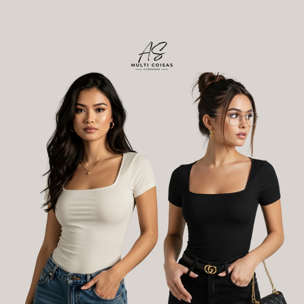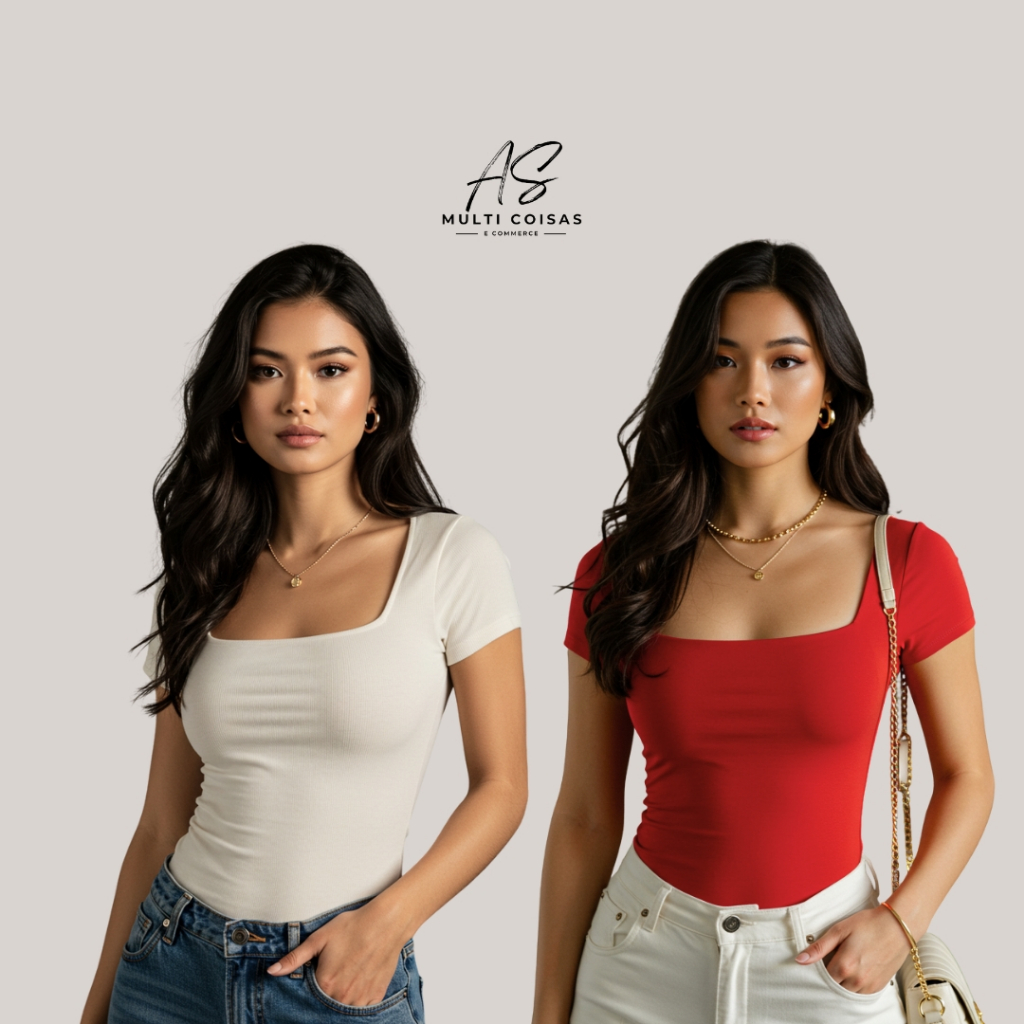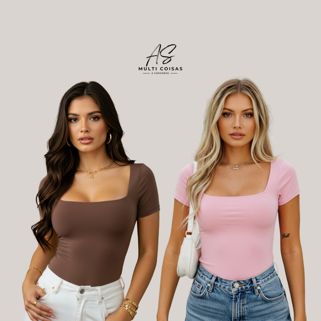 KIT COM 2 BLUSINHAS BABY LOOK BÁSICAS COM DECOTE QUADRADO VARIAS CORES VERÃO