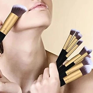 Kit 10 Pincéis De Maquiagem Para Pó/Base/Corretivo/Blush/Sombra/Contorno Kabuki Profissional
