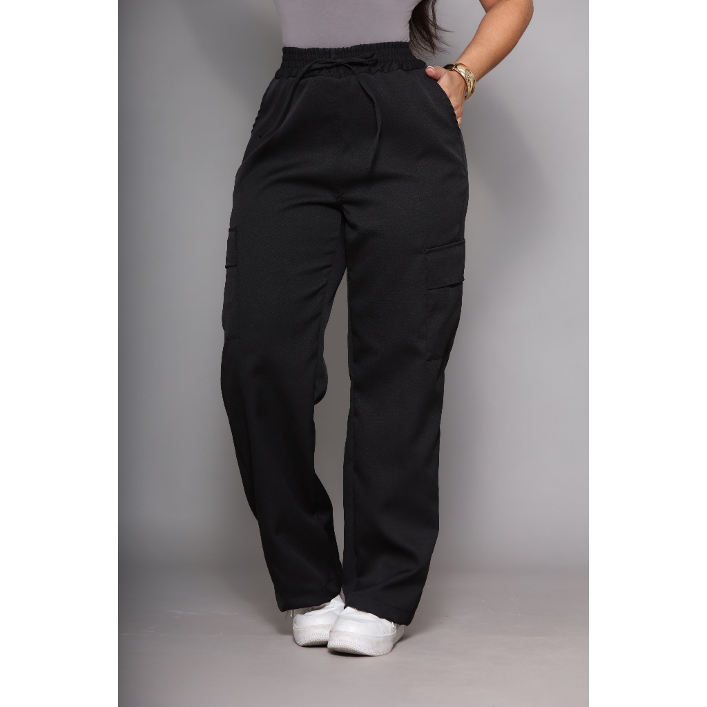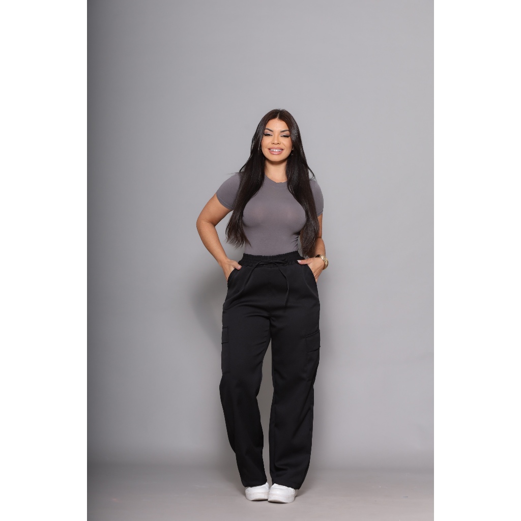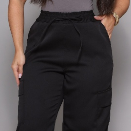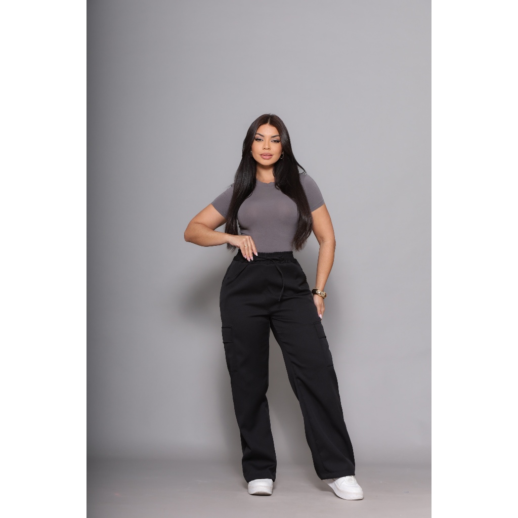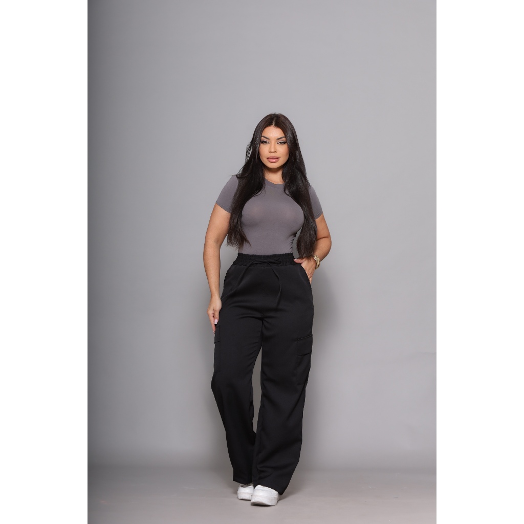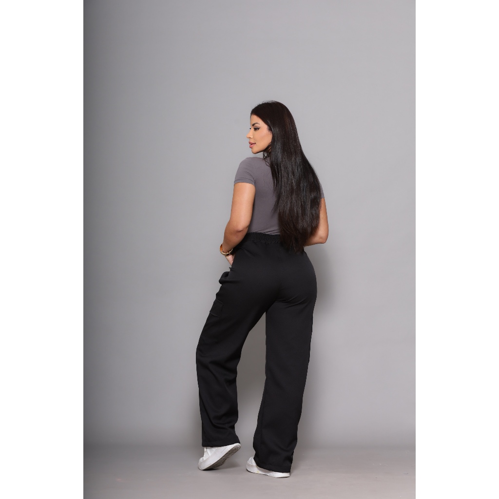 Calça Pantalona Wide Leg Bolso Cargo