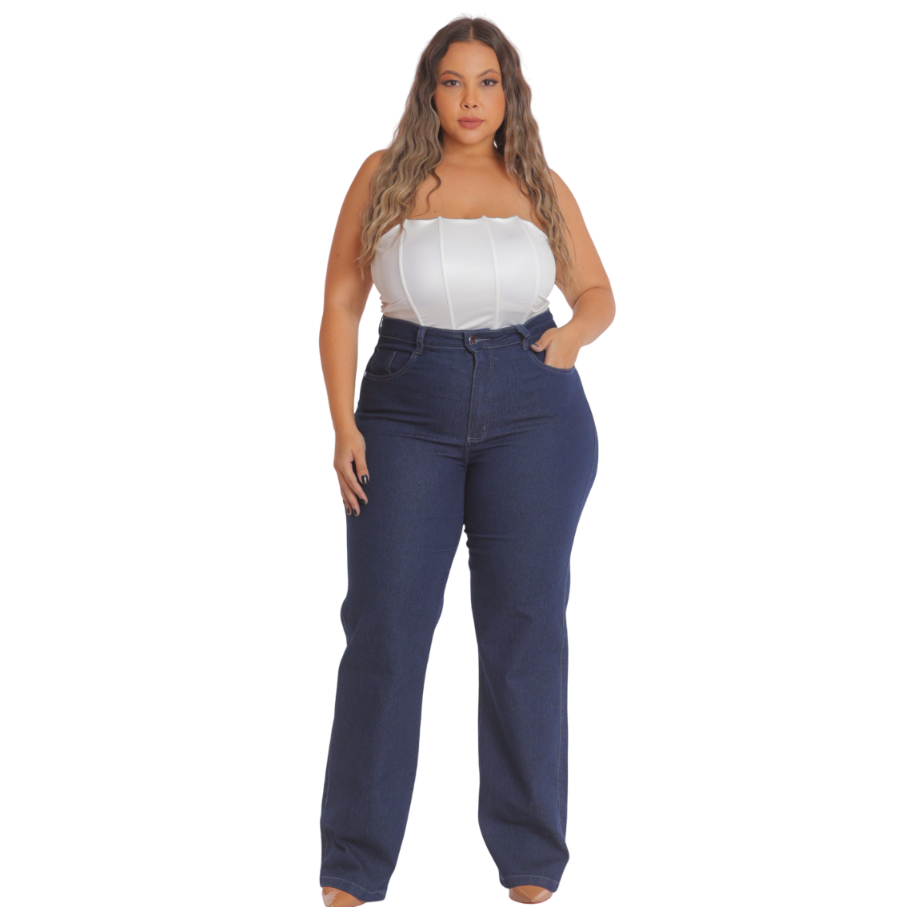 Calça Jeans Azul Wide Leg Pantalona – Moda Grande com Lycra
