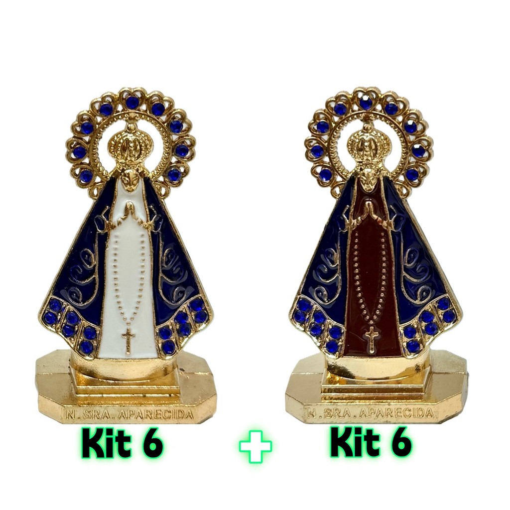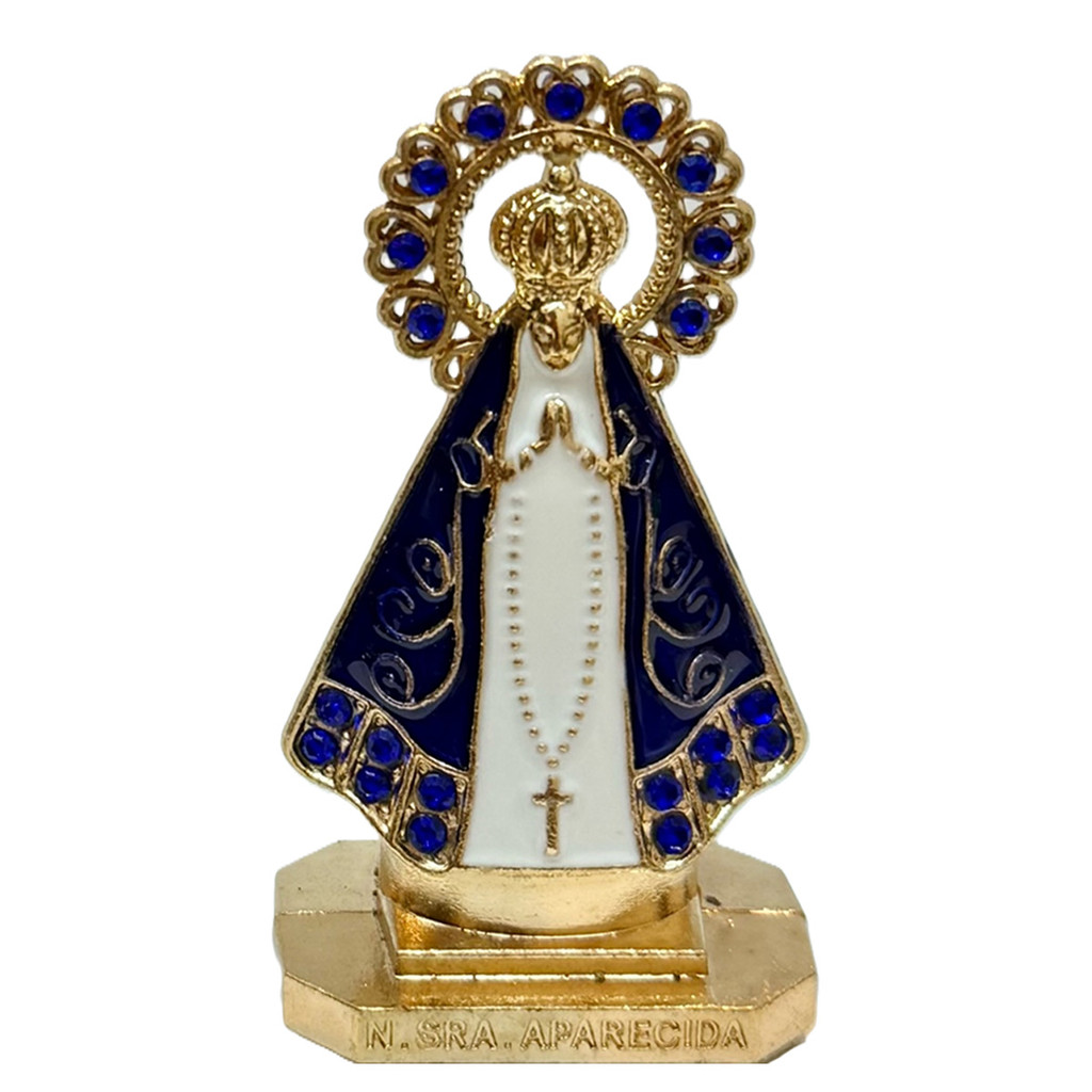 Kit C/12 Santinha Nossa Senhora Aparecida Dourado/Azul/Dourado - Sagrado