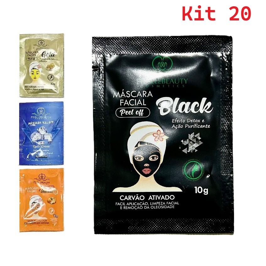 Kit 20 Máscara Facial Sachê Black De Phallebeauty 10g
