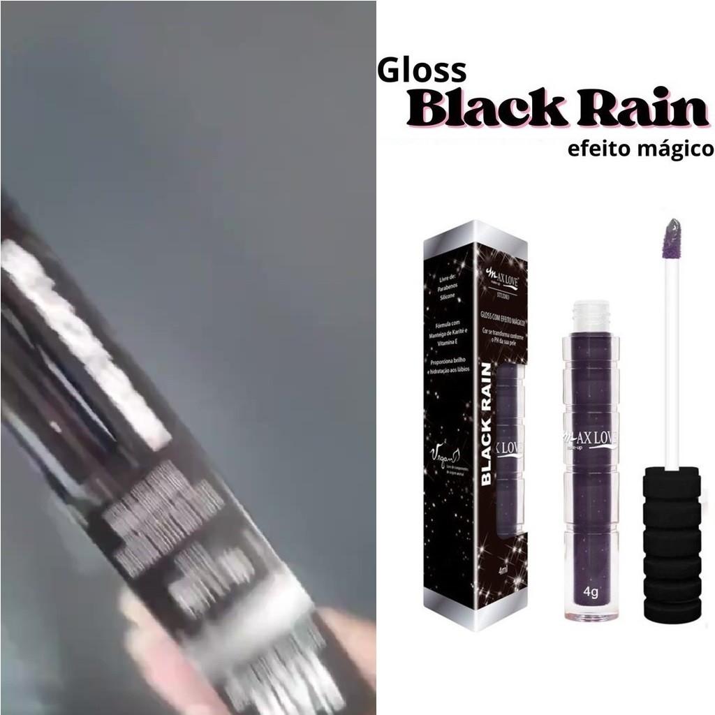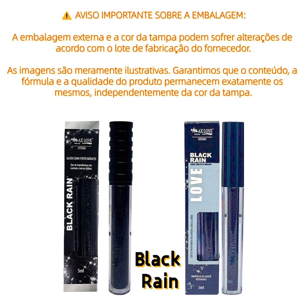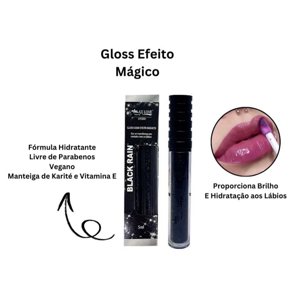 Kit 1/2/3 unidades Gloss Mágico Black Rain Max Love Preto que Revela Cor Personalizada Reage ao PH e Cria Tom Exclusivo