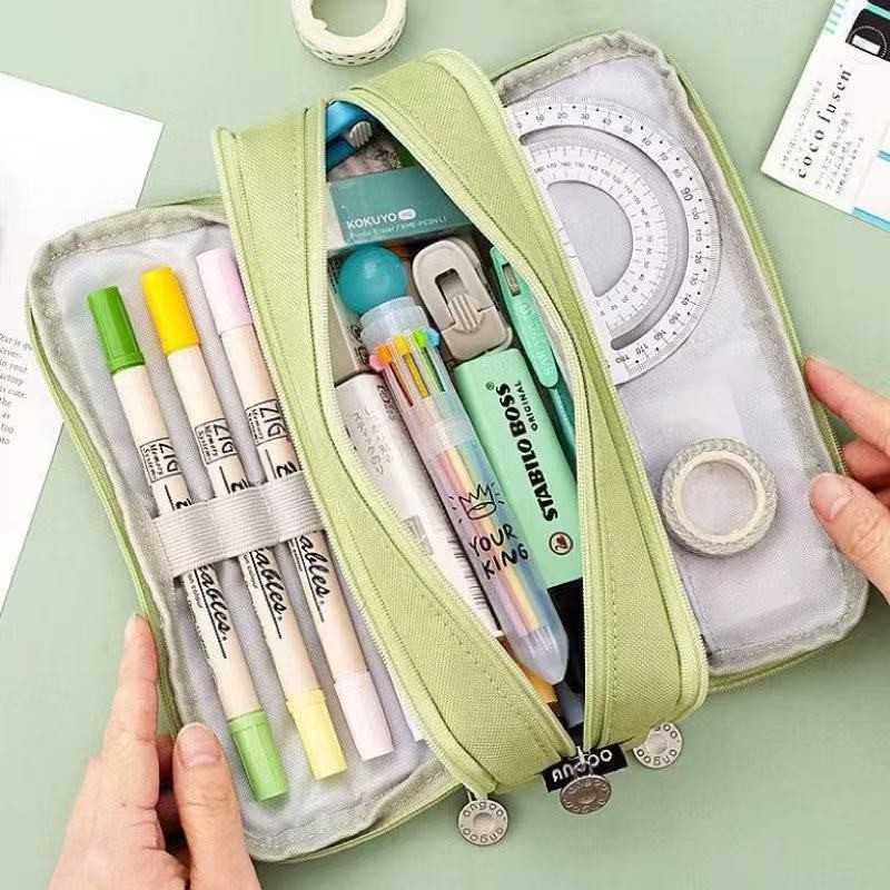 Estojo De Lápis De Tecido De Grande Capacidade Camada /Double Sided Pen Bag Pencil Case/Escolar
