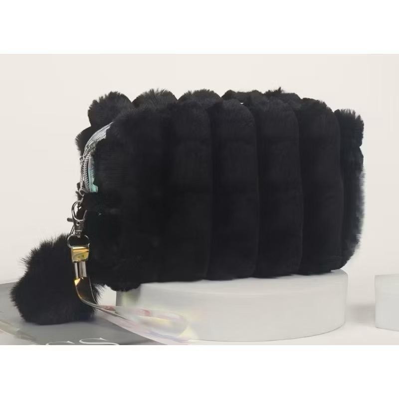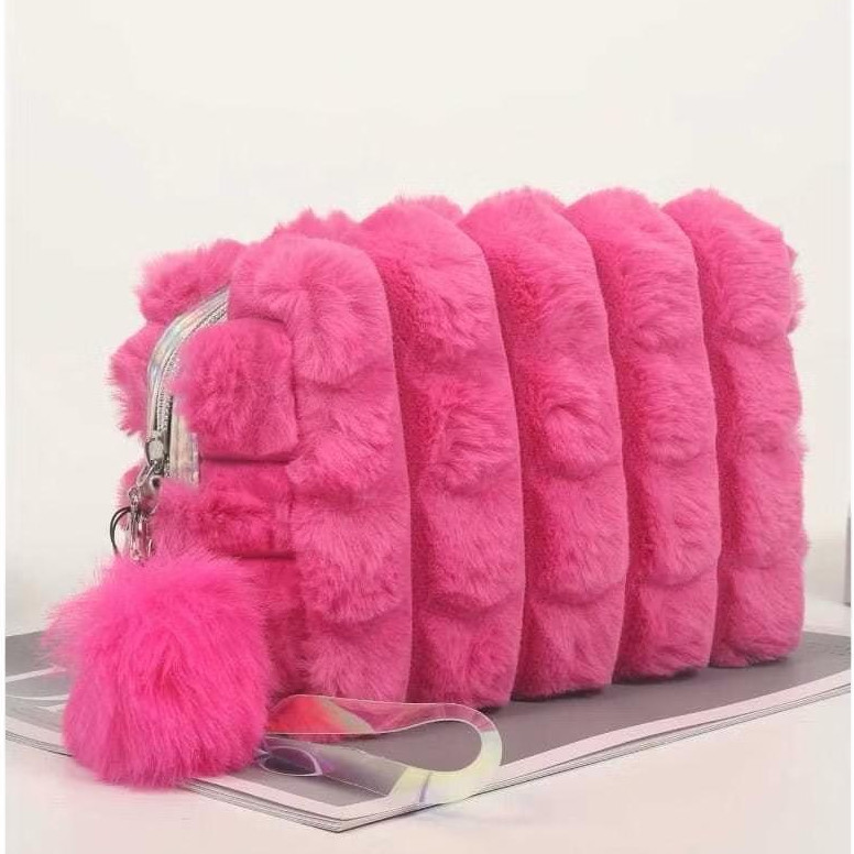 Necesser Pelucia Necessaire com Pompom e Alça Feminina Alto relevo Peluda Estojo de Bolsa Yan Shop