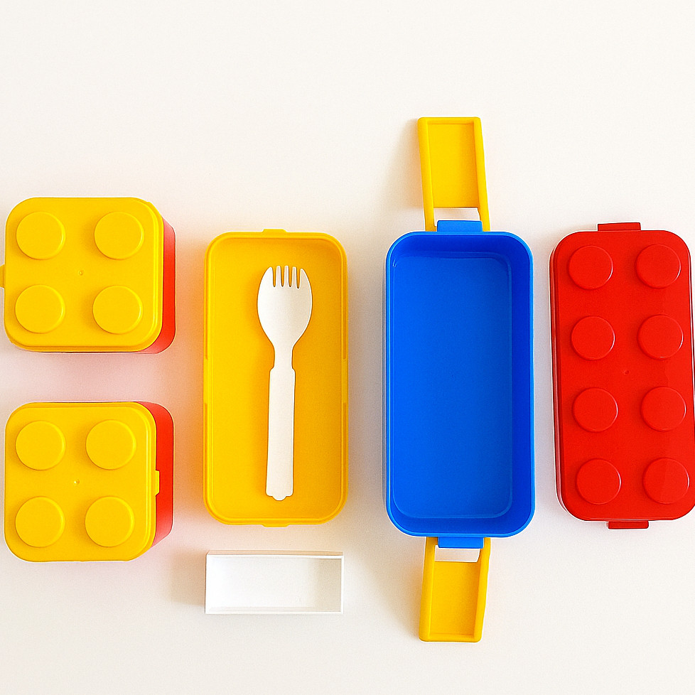 Lancheira Infantil De Lego Com 3 Potes Coloridos E Talher Para Escola E Viagem