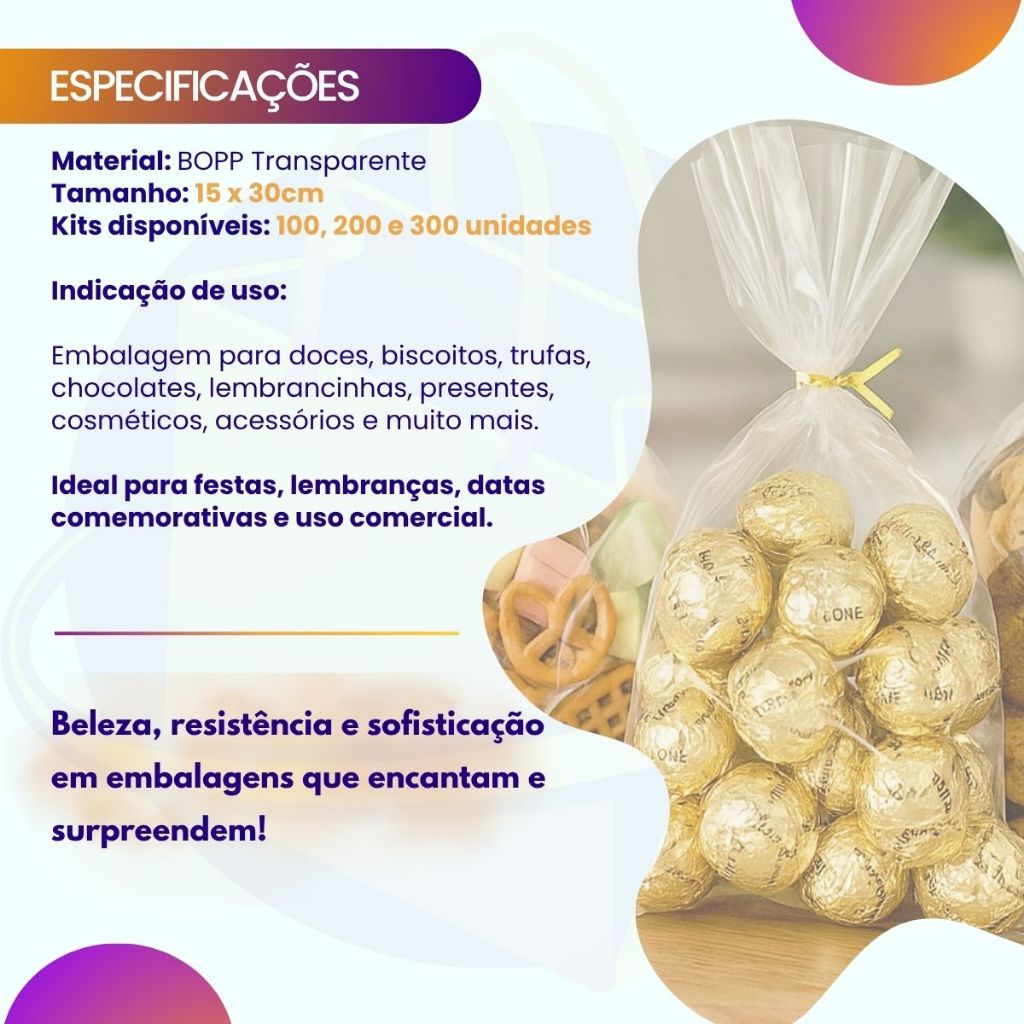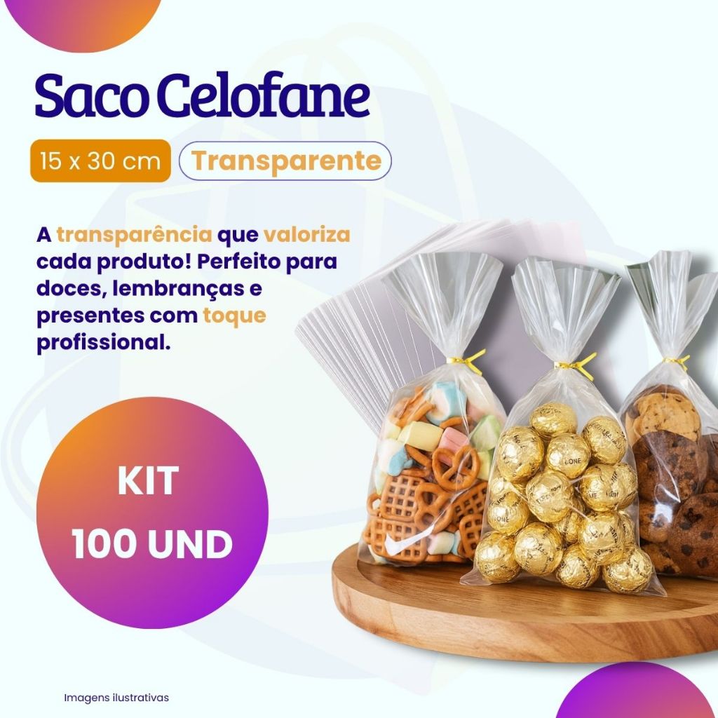 Saco Presente Transparente Celofane 15x30 Cesta Lembrancinha Saquinho