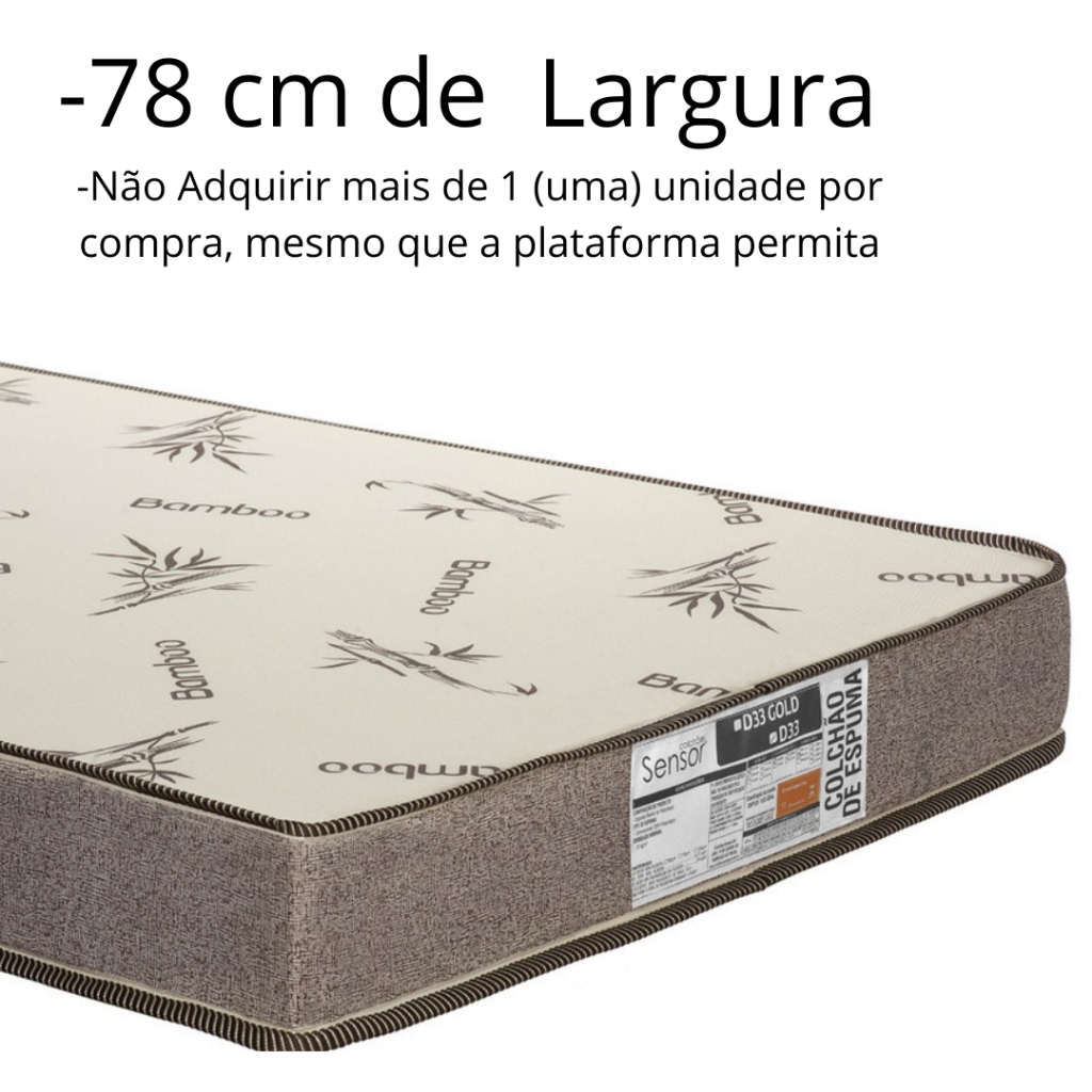Colchão Solteiro D33 com 78x188 Colchão para Cama de Solteiro Espuma D33 Firme com 88x188