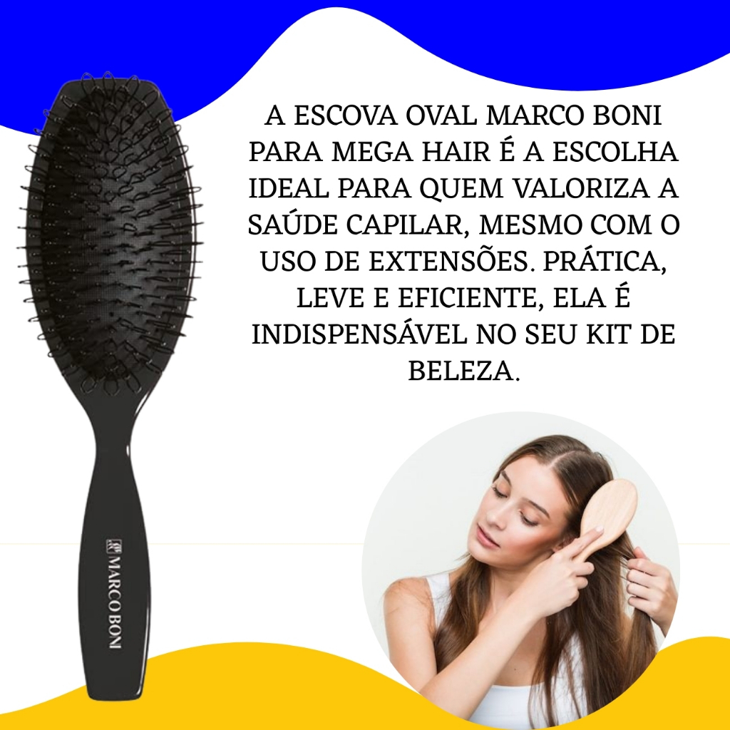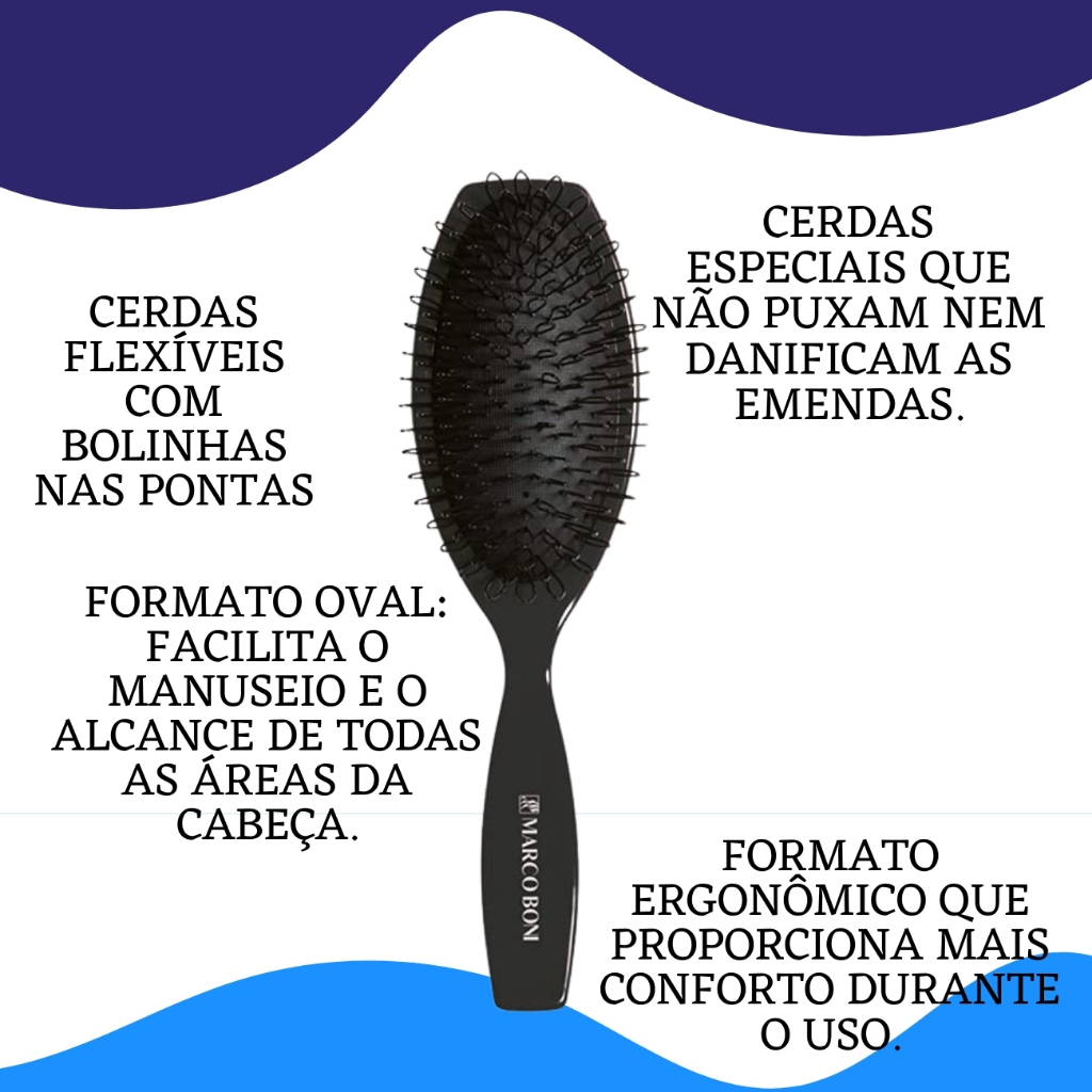 ESCOVA RAQUETE OVAL PRETA PRA MEGA HAIR FORMATO ERGONOMICO REF:7704T | MARCO BONI
