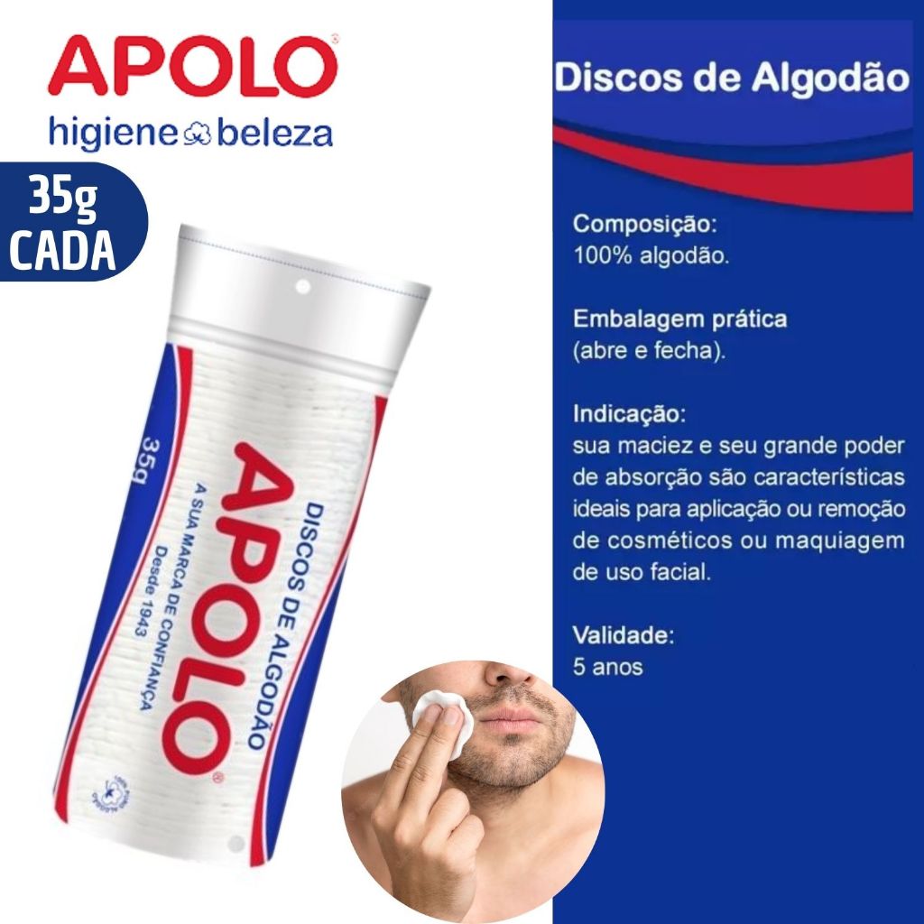KIT 5 ALGODÃO DISCO 35GR APOLO LIMPEZA FACIAL MAQUIAGEM E SKINCARE