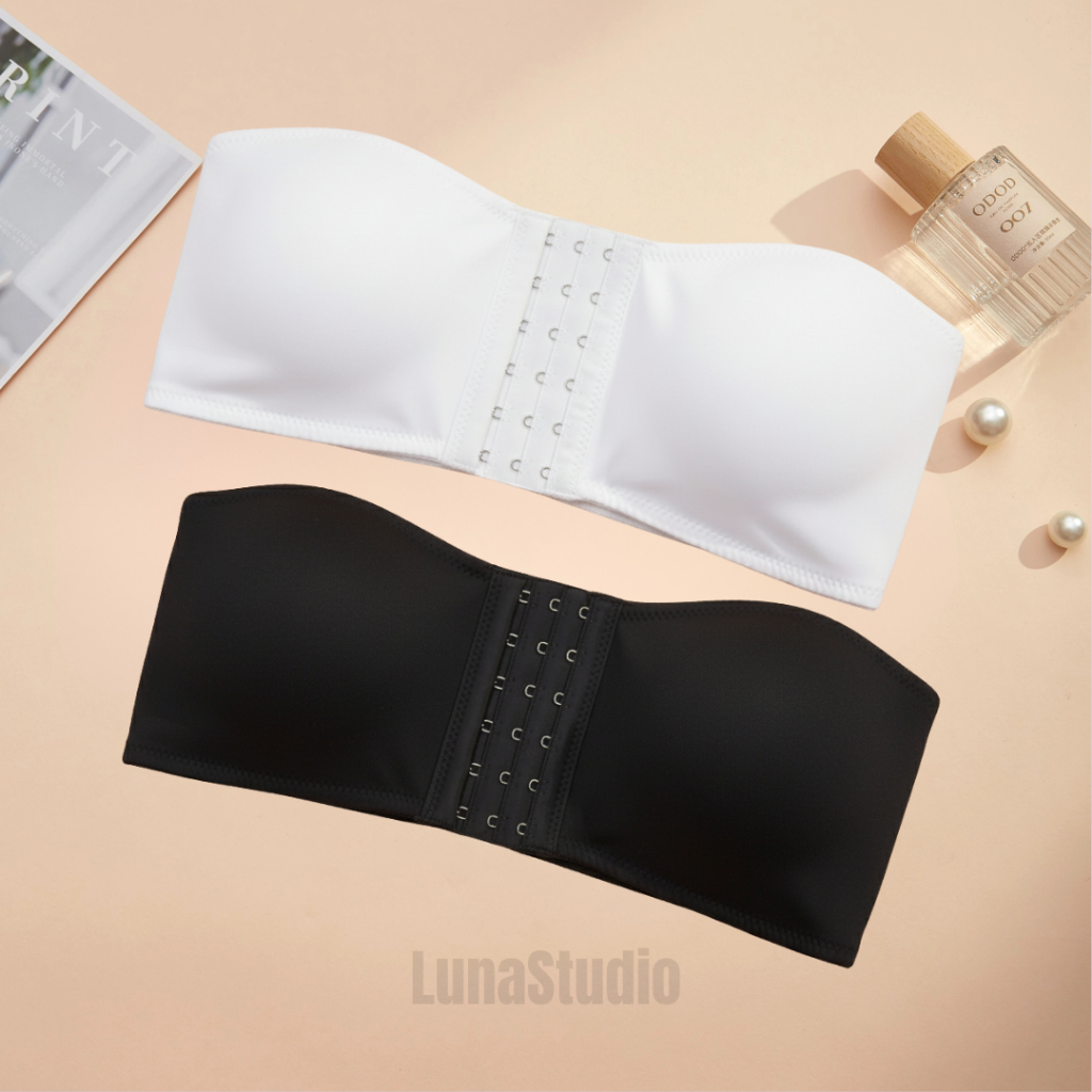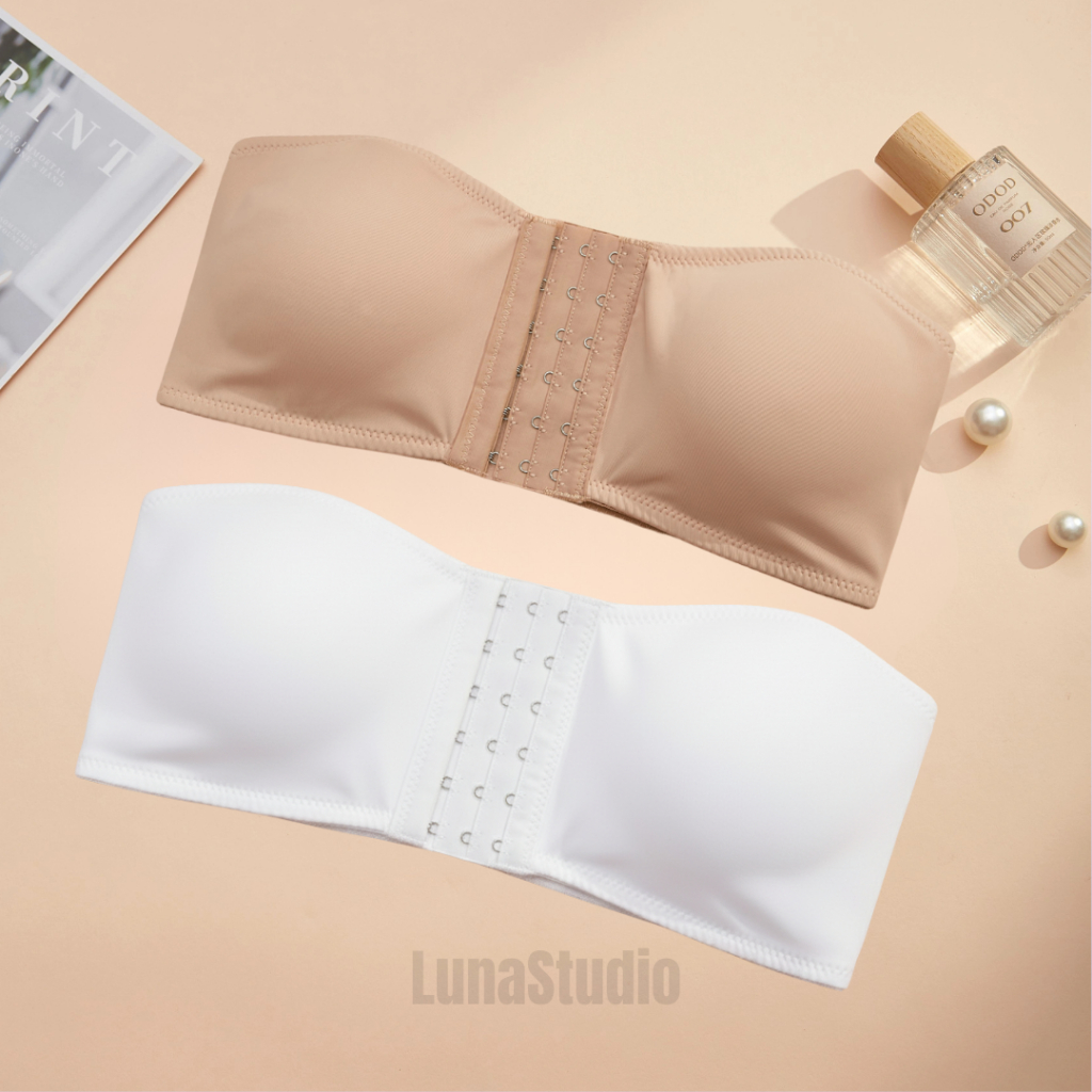 Kit 2 Sutiã Tomara que Caia Fecho Frontal Três Níveis Top Sem Alça Reforçado Bojo Removível Preto Bege Branco