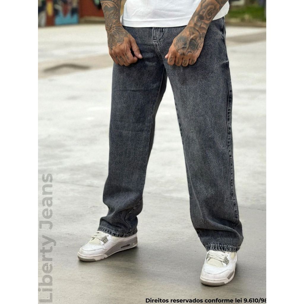 Calca Jeans Masculina Balão Baggy Skatista Boca Larga Estonada Streetwear