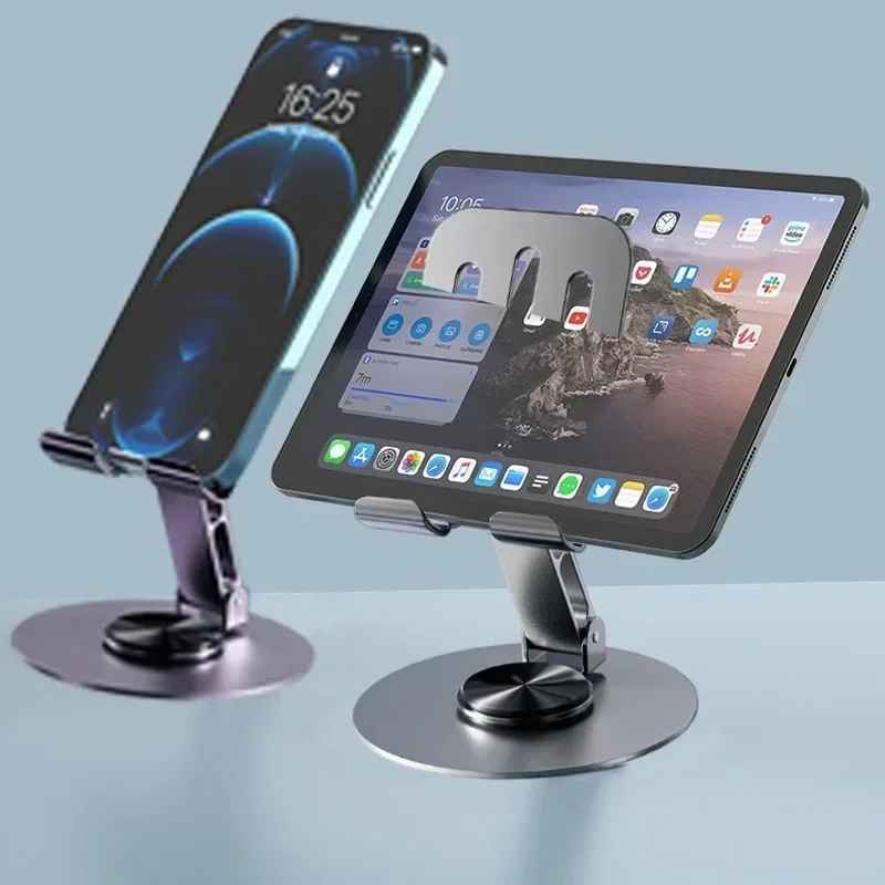 Suporte de Mesa Metal Pesado Base Giratória 360° Ajustável Smartphones Celular Tablet Alumínio