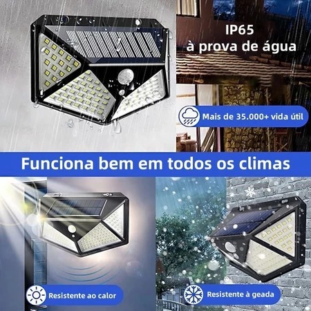 Arandela Solar 100 Led's 3 Modos Luminária Com Sensor Prova D'água Parede Aréa Externa Jardim