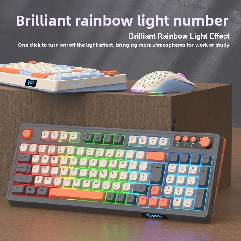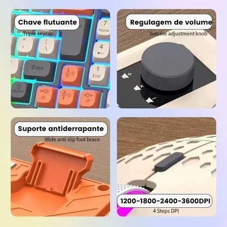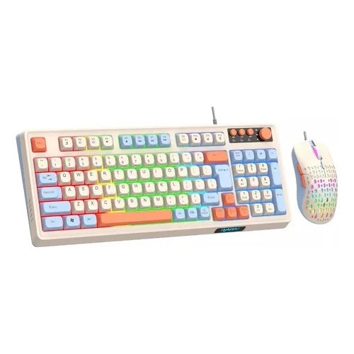 Kit Teclado e Mouse Gamer RGB com Fio e Mixer de Volume Layout 98 Teclas Jogos Semi Mecanico Setup