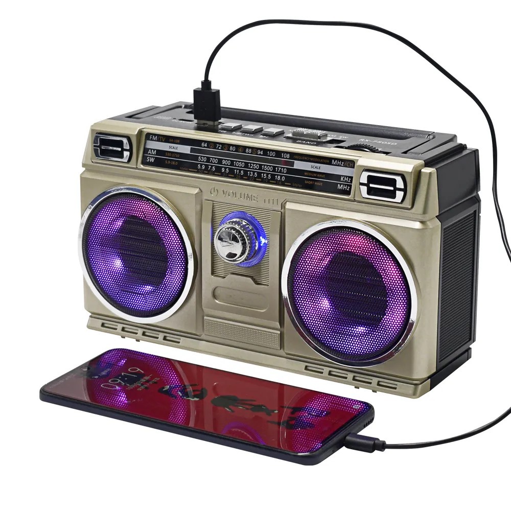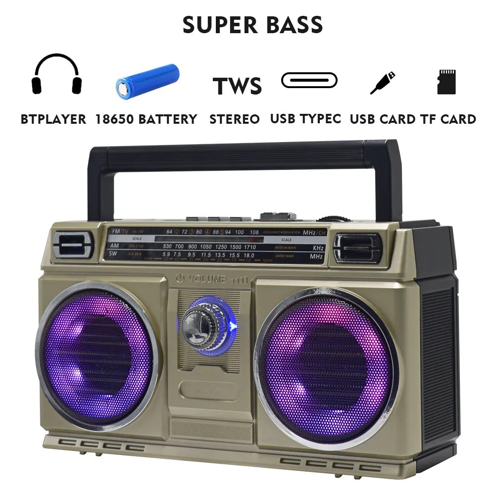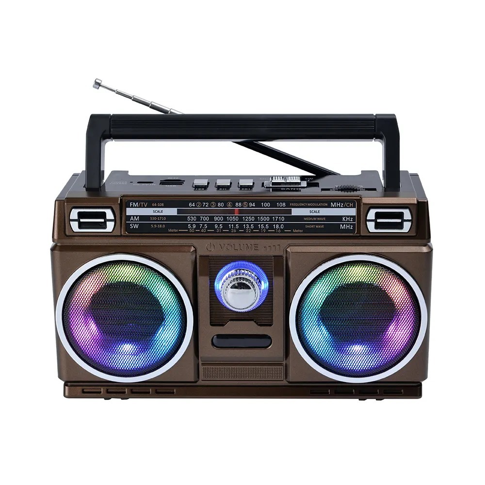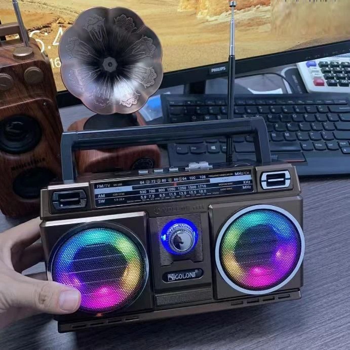 Rádio Retrô Bluetooth Recarregável Portátil Led Colorido AM/FM TWS com Alça Bivolt 110V/220V