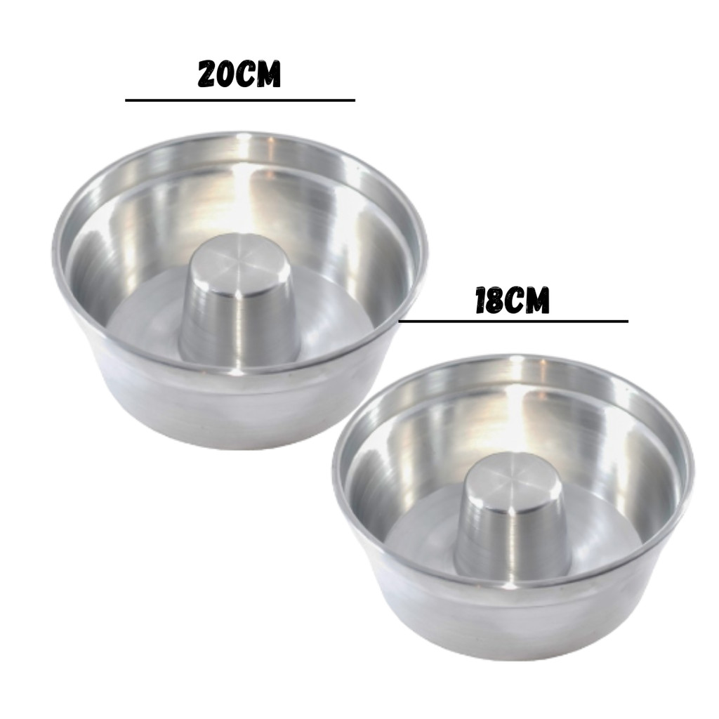 KIT 2 Formas para Bolo com furo 20 e18cm, Torta Suíça Pudim bolo 16/14