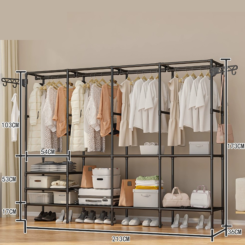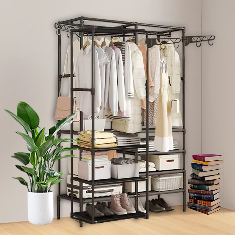 Stand Up Roupa Sapateira Guarda Roupa Portátil Triplo Arara 1/2/3/4 Fileiras de Roupeiros