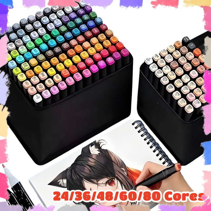 36/48/60/80 Pontas Canetinhas Marca Texto Ponta Dupla Coloridas para Escritório Escola Arte