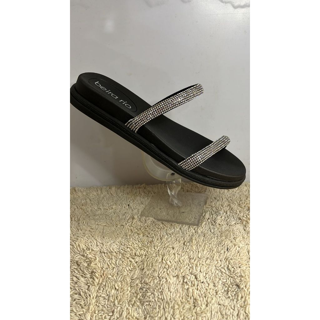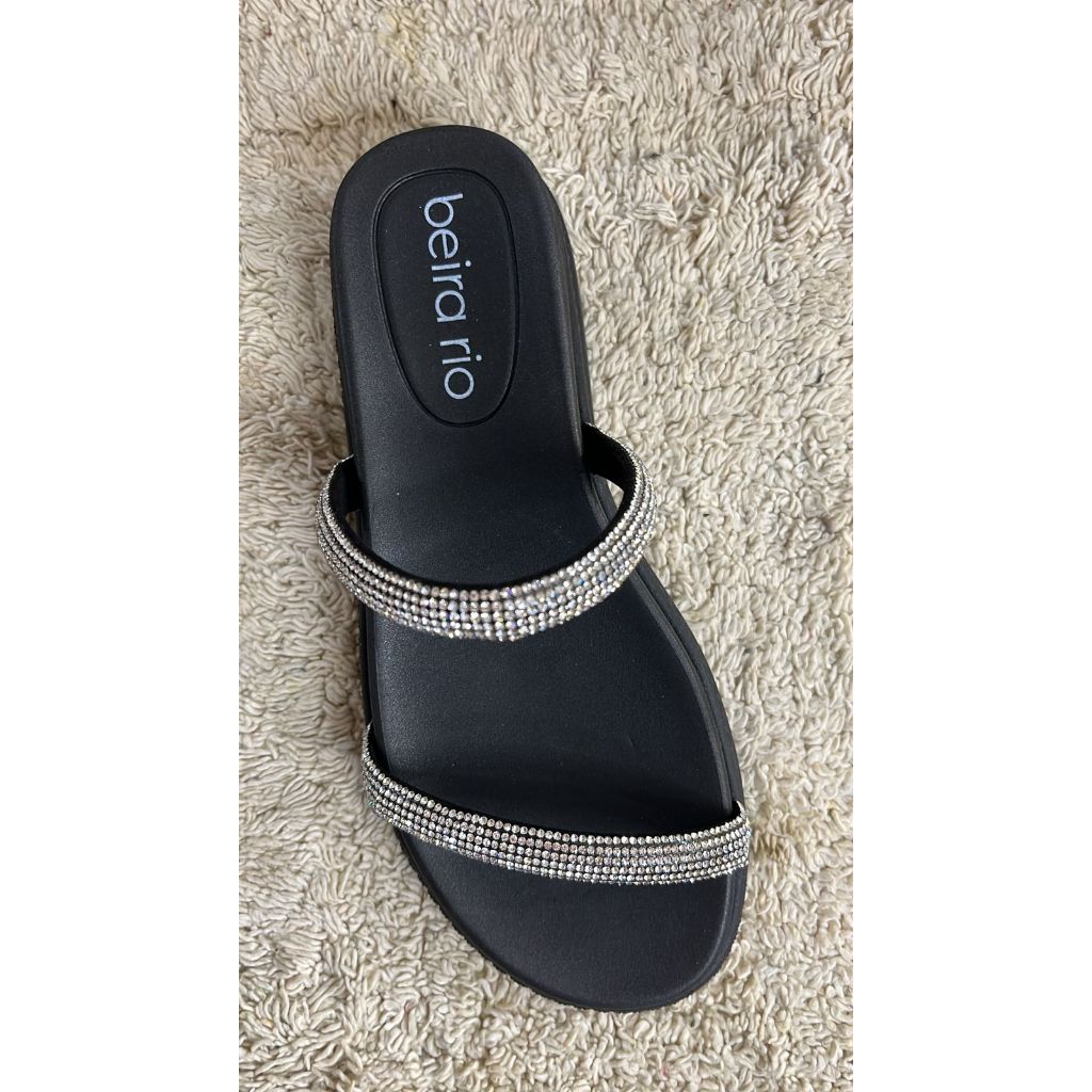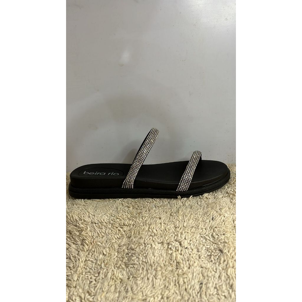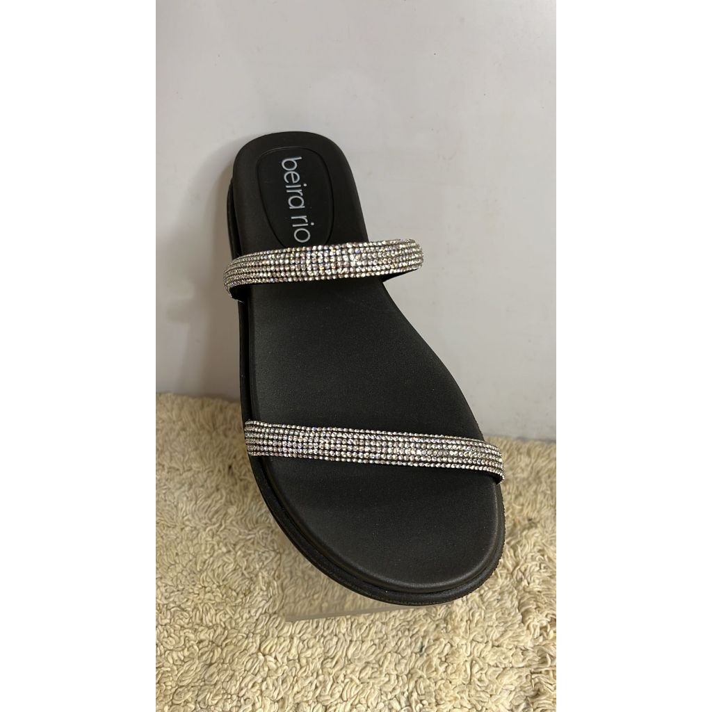 Sandália Papete Feminina Beira Rio Verona Cor: Preta/ tira cristal-prata