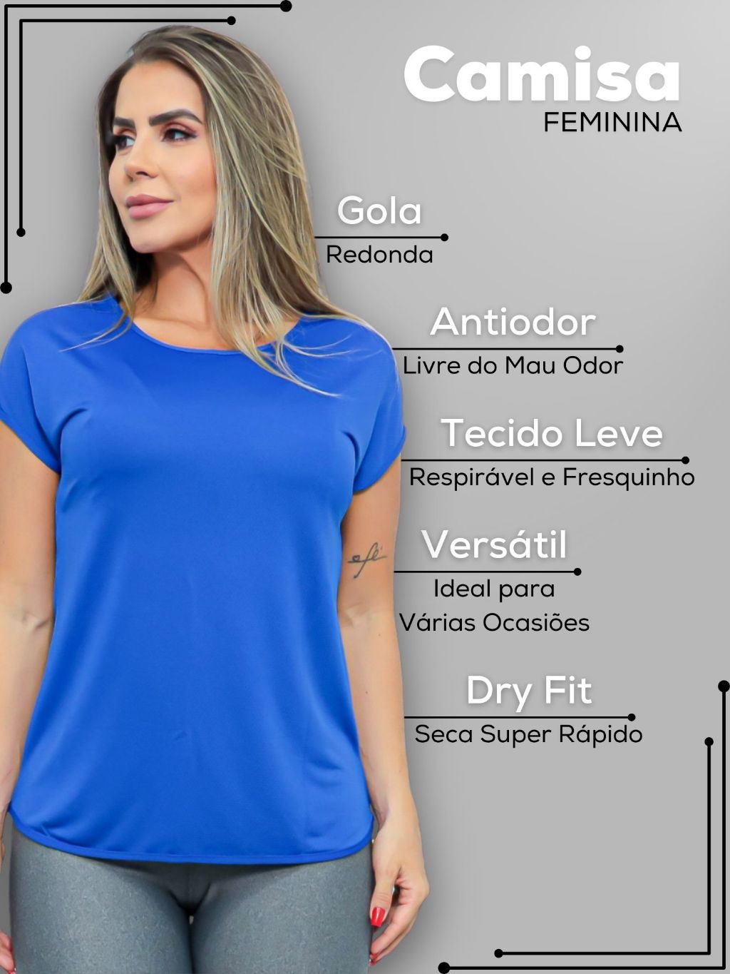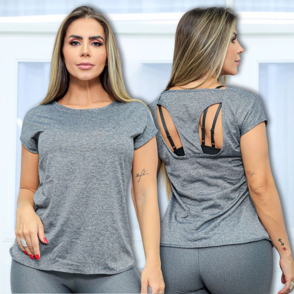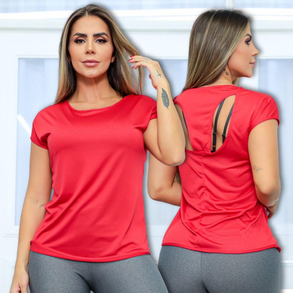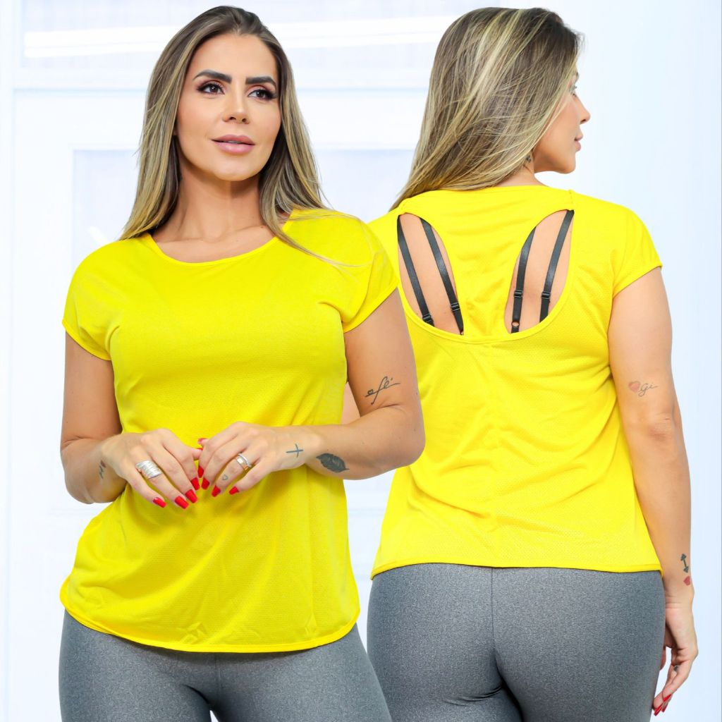 Camisa Fitness Feminina Dry Fit Academia Blusa Manga Curta Treinos Básica Costas Vazada Respirável Premium