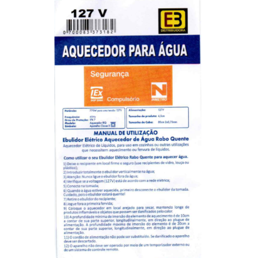 Aquecedor De Água Rabo Quente Ebulidor Elétrico 127V ou 220V Selo Inmetro