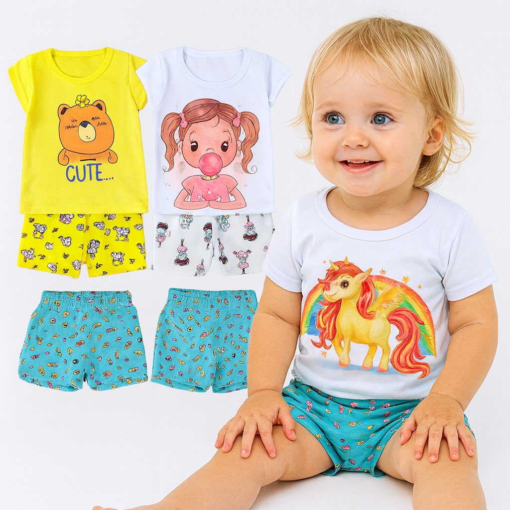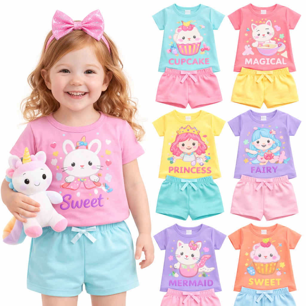kit 2 ou 6 peças Roupa Infantil Menina Verão Conjunto Infantil Menina Roupa Feminina de Verão Sortidos Entrega Rápida