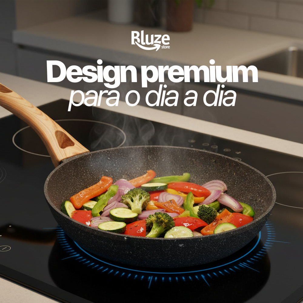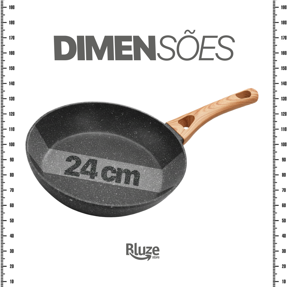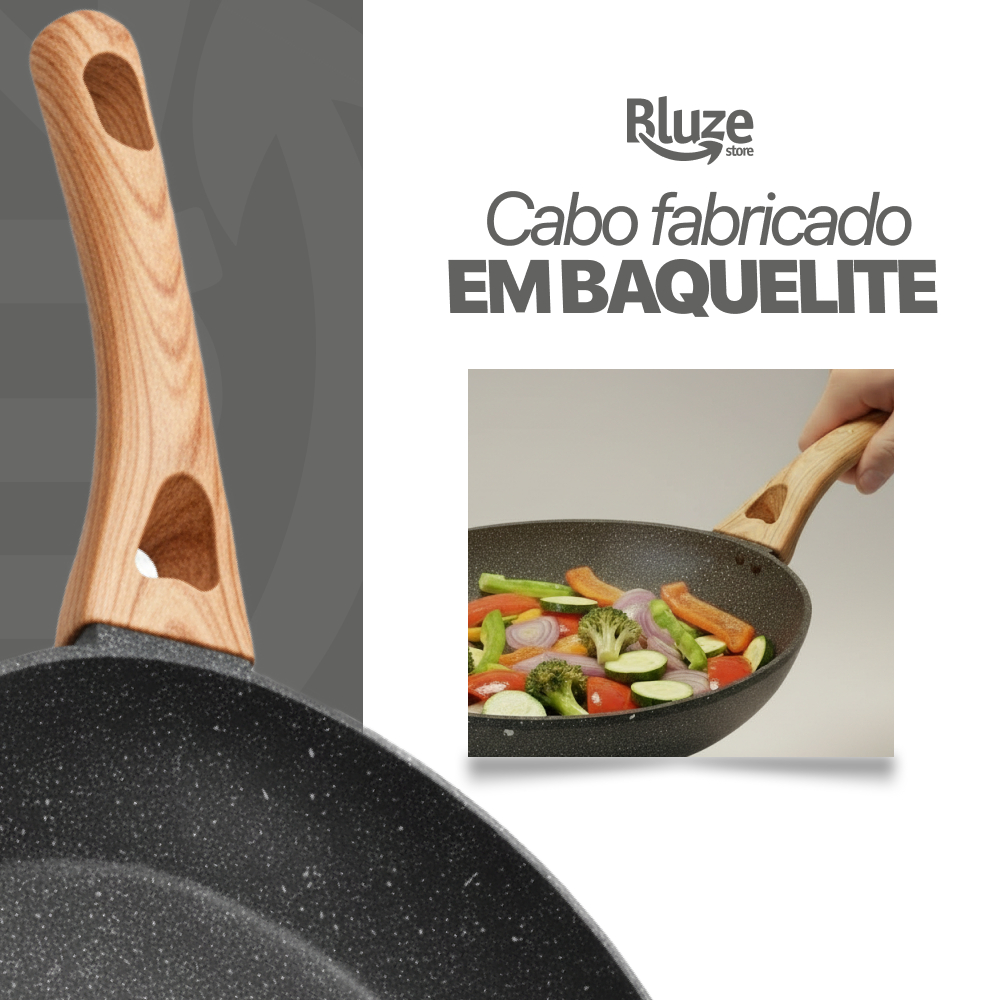 Frigideira Antiadeirente Mármore Resistente Cabo De Madeira Fundo Indução Fogão A Gás E Elétrico Fita Sem Oléo Premium