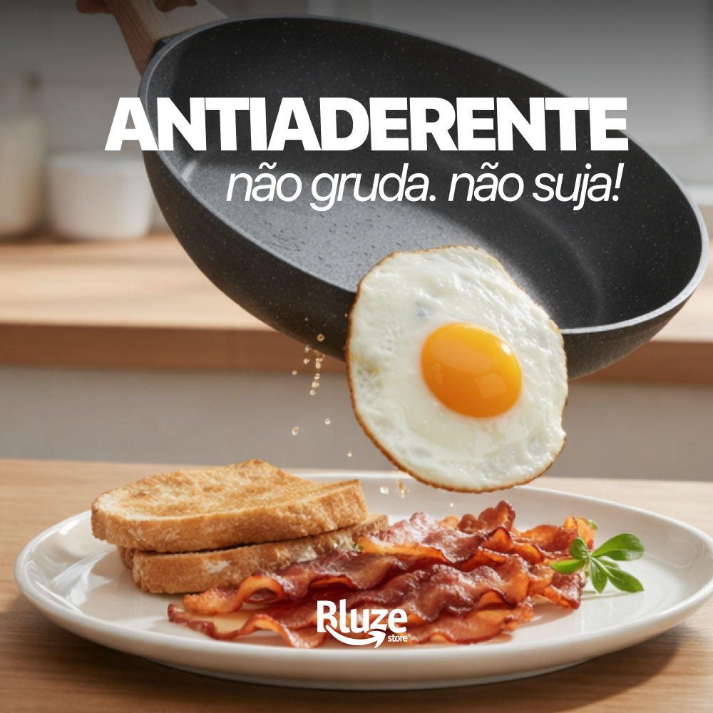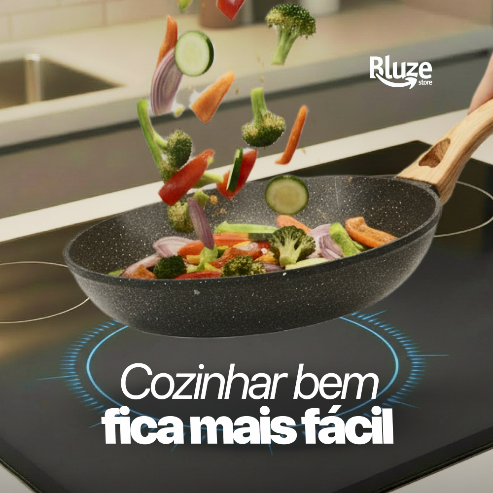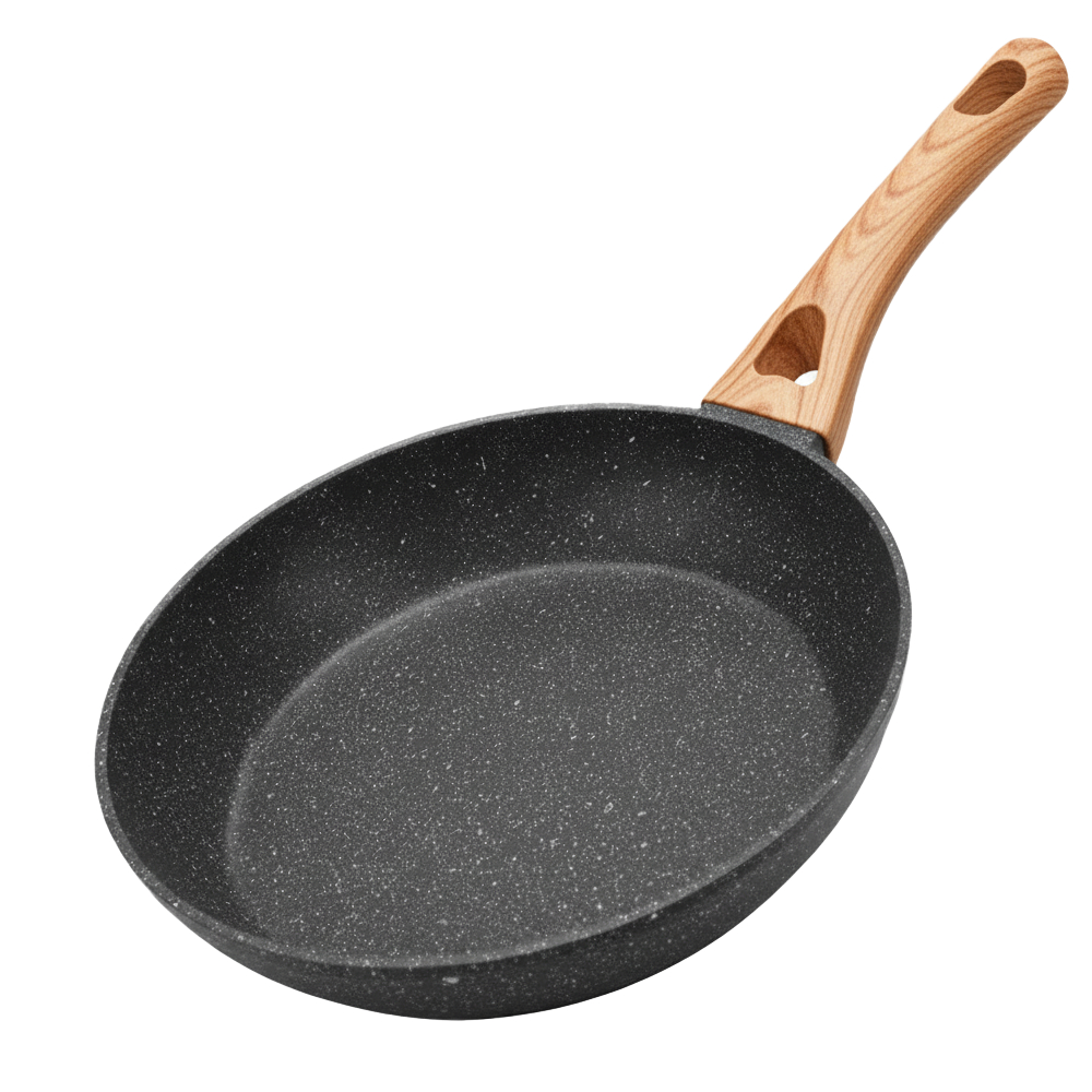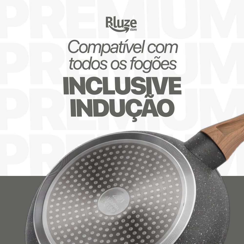 Frigideira Antiadeirente Mármore Resistente Cabo De Madeira Fundo Indução Fogão A Gás E Elétrico Fita Sem Oléo Premium