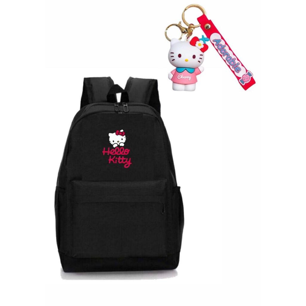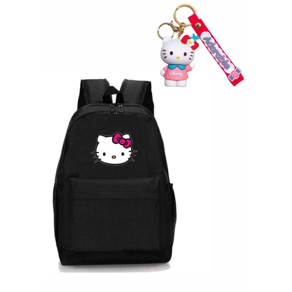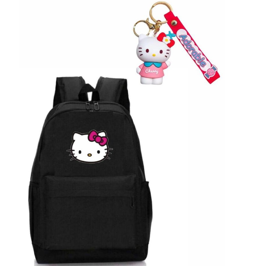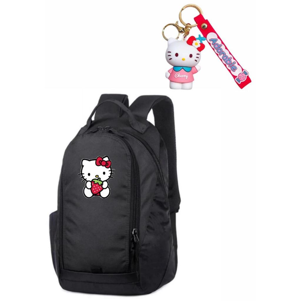 Mochila Hello + Chaveiro Feminina Escolar Resistente com Porta Garrafinha SK 04