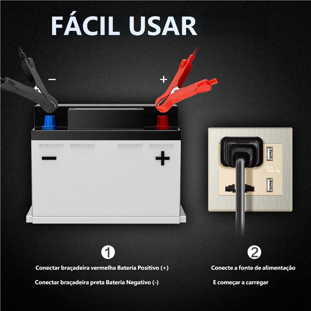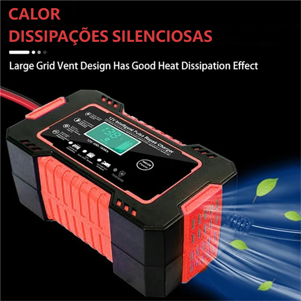 Carregador de bateria automotivo inteligente 12V com Display Digital Automático Energia Reparação Puls