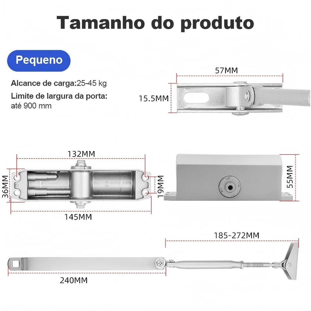 Mola Aérea Fechador Automático Para Portas Externas E Internas Até 45 Kg