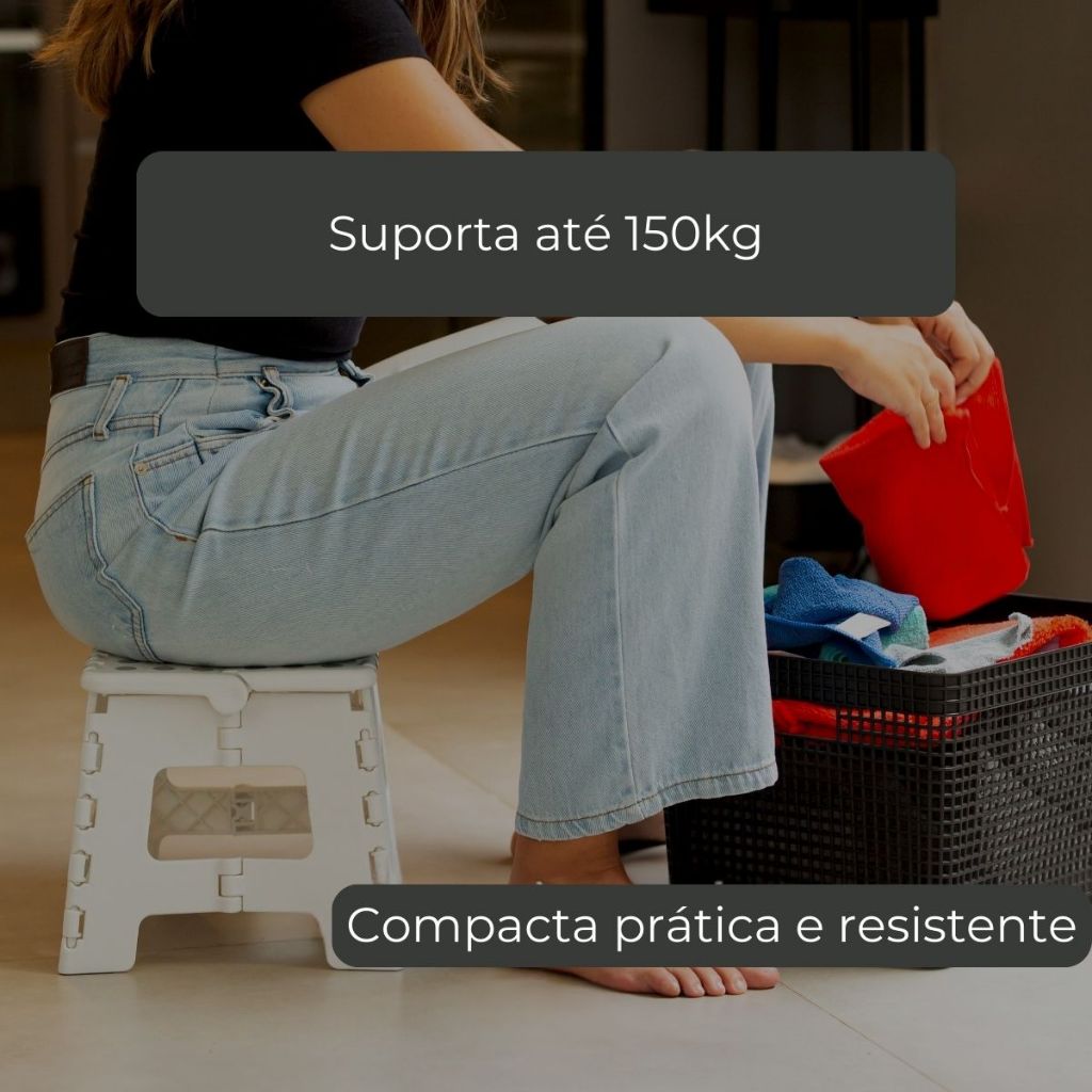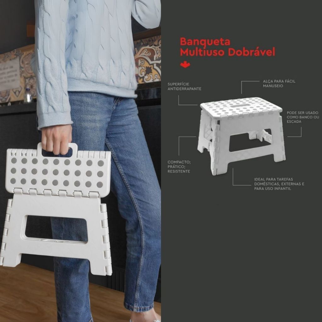 Banqueta Multiuso Retrátil Branca Prática Resistente e Compacta para Qualquer Momento