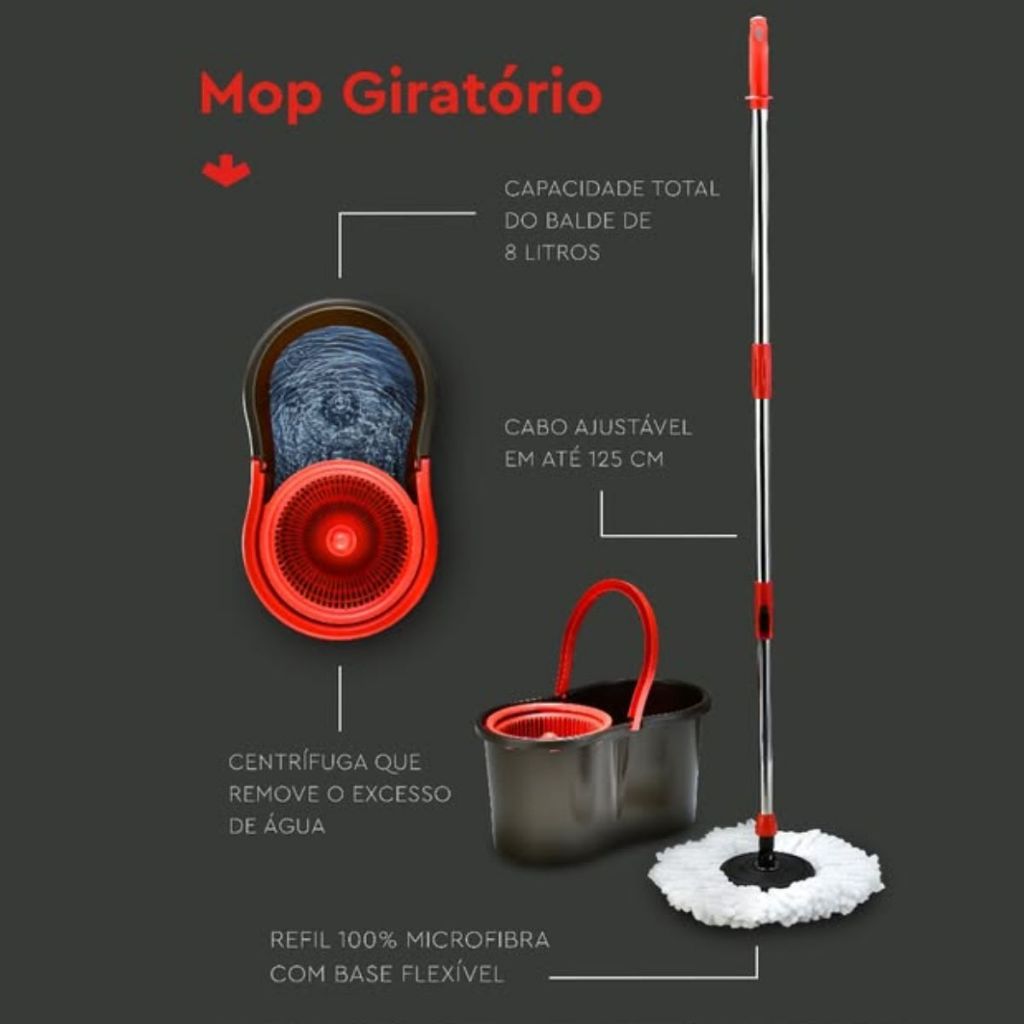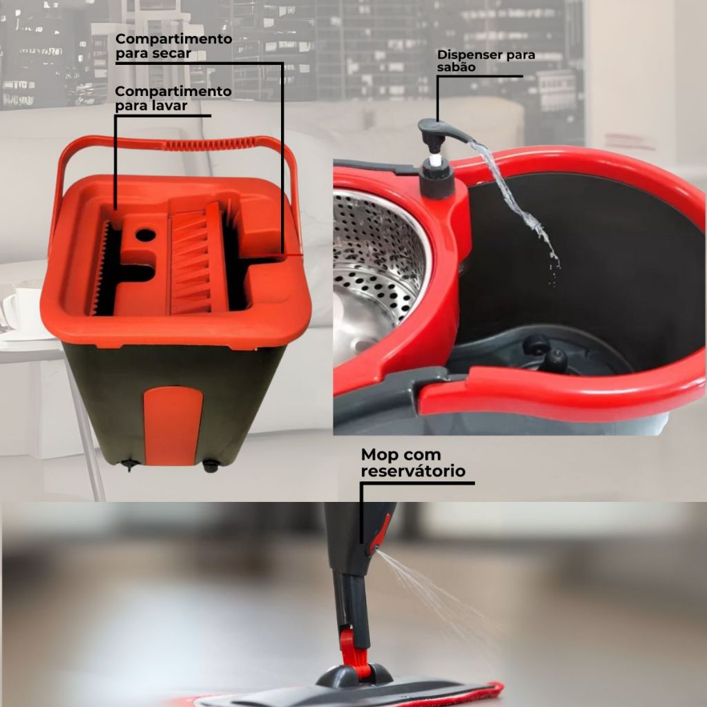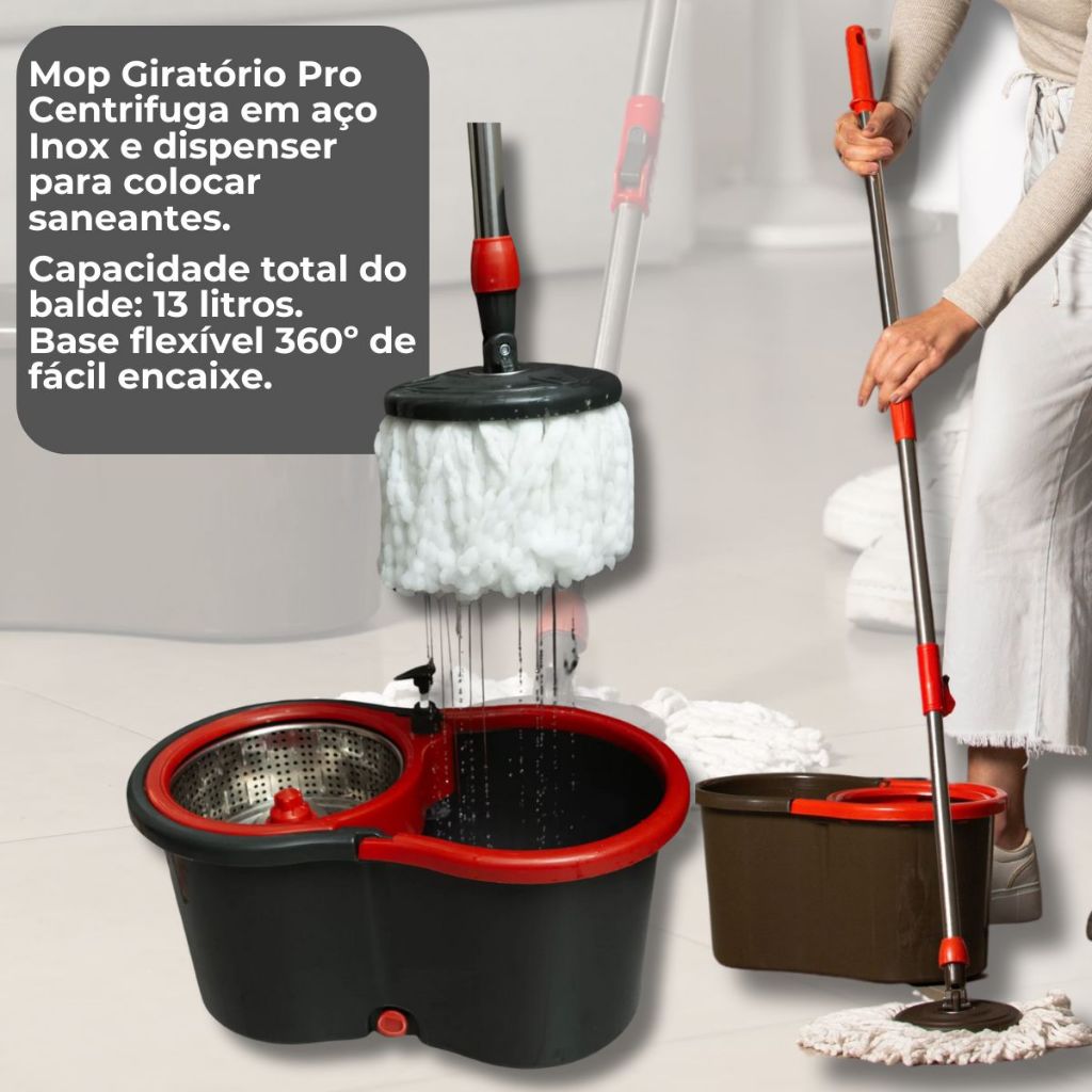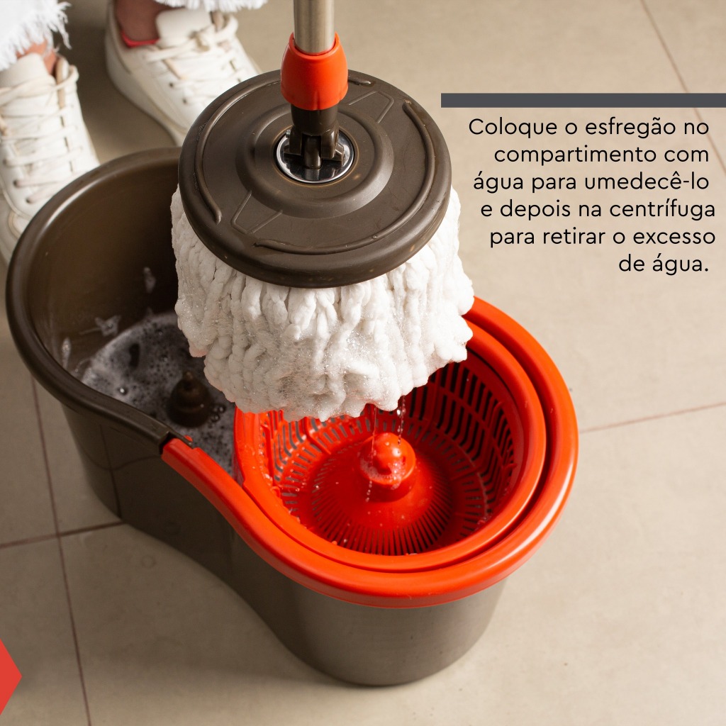 Mop Balde Esfregão Giratório Pró 1 Refil Com Roda E Alça lava e seca