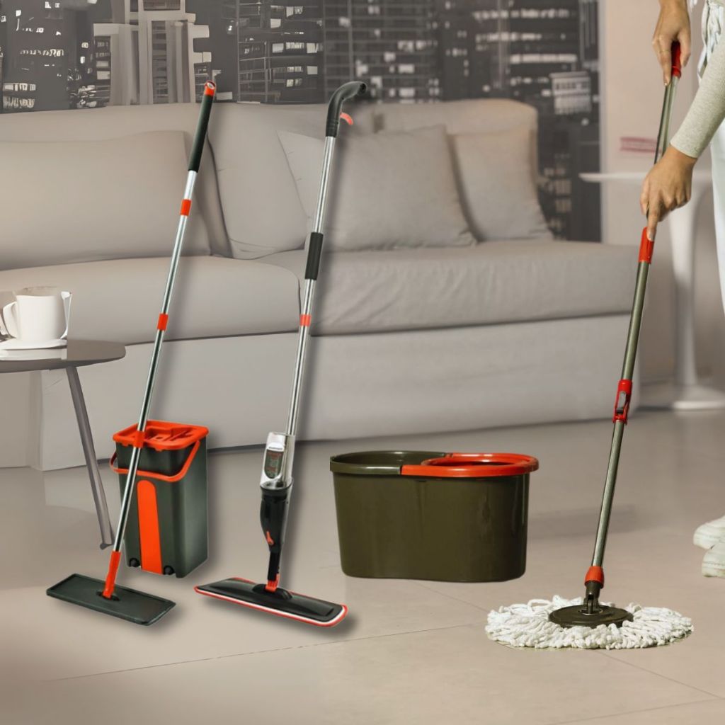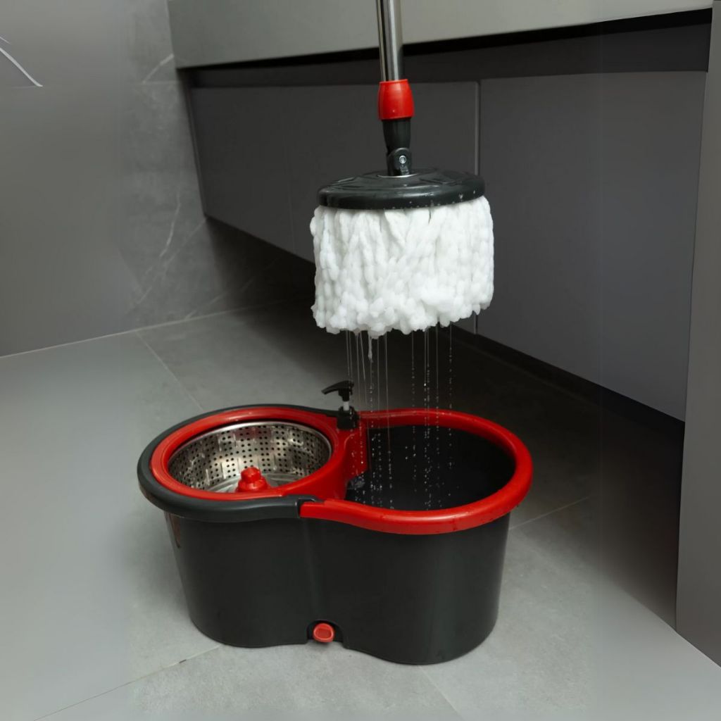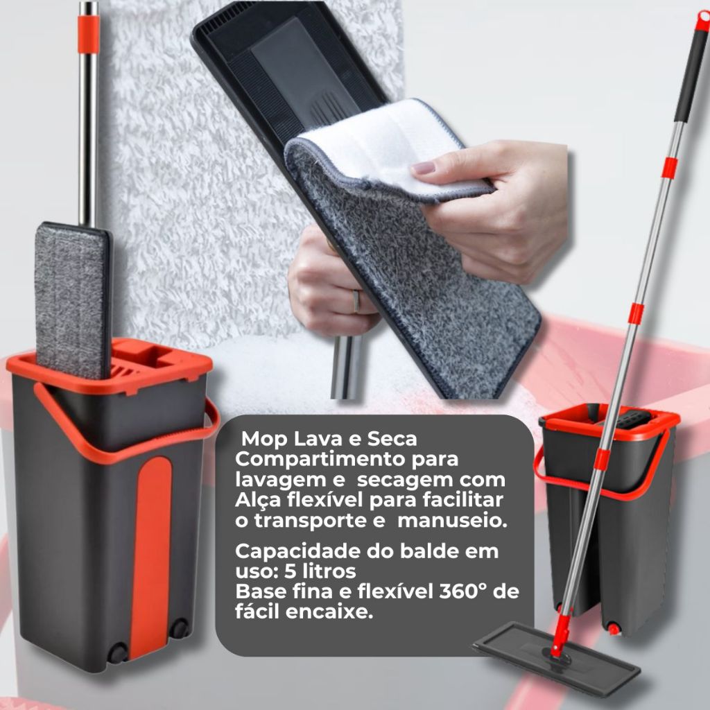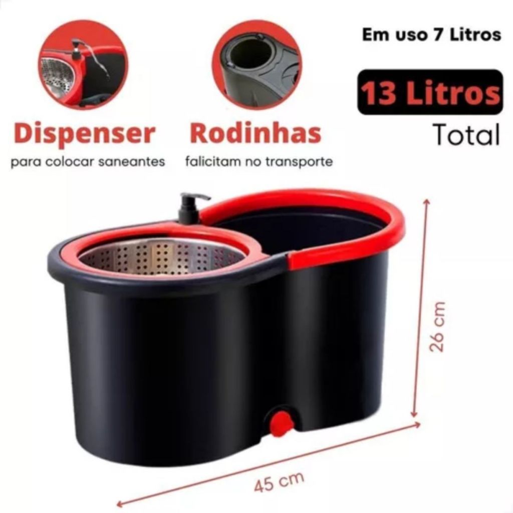 Mop Balde Esfregão Giratório Pró 1 Refil Com Roda E Alça lava e seca