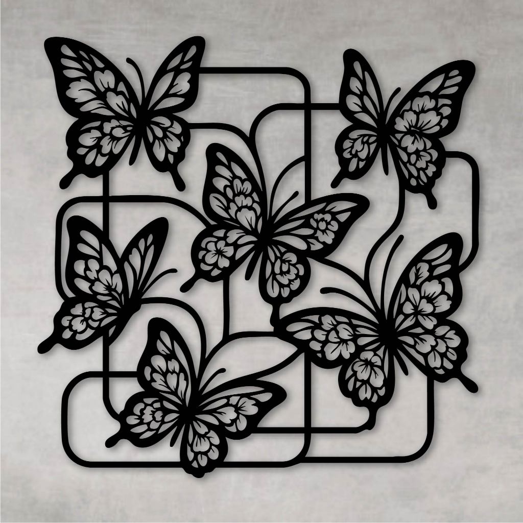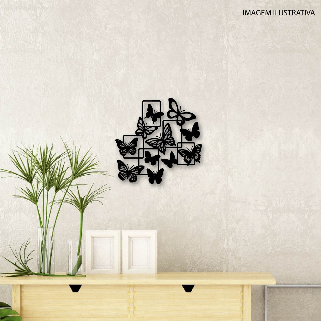 Quadro Decorativo Vazado Decoração Painel Borboletas MDF Preto
