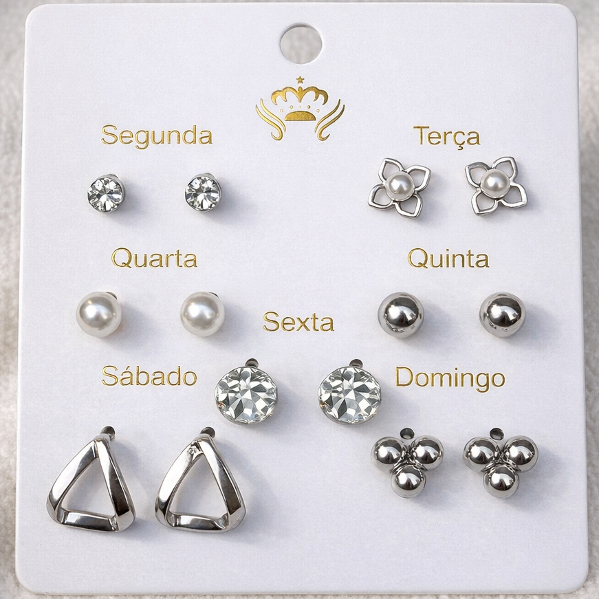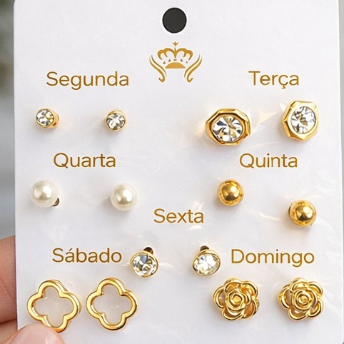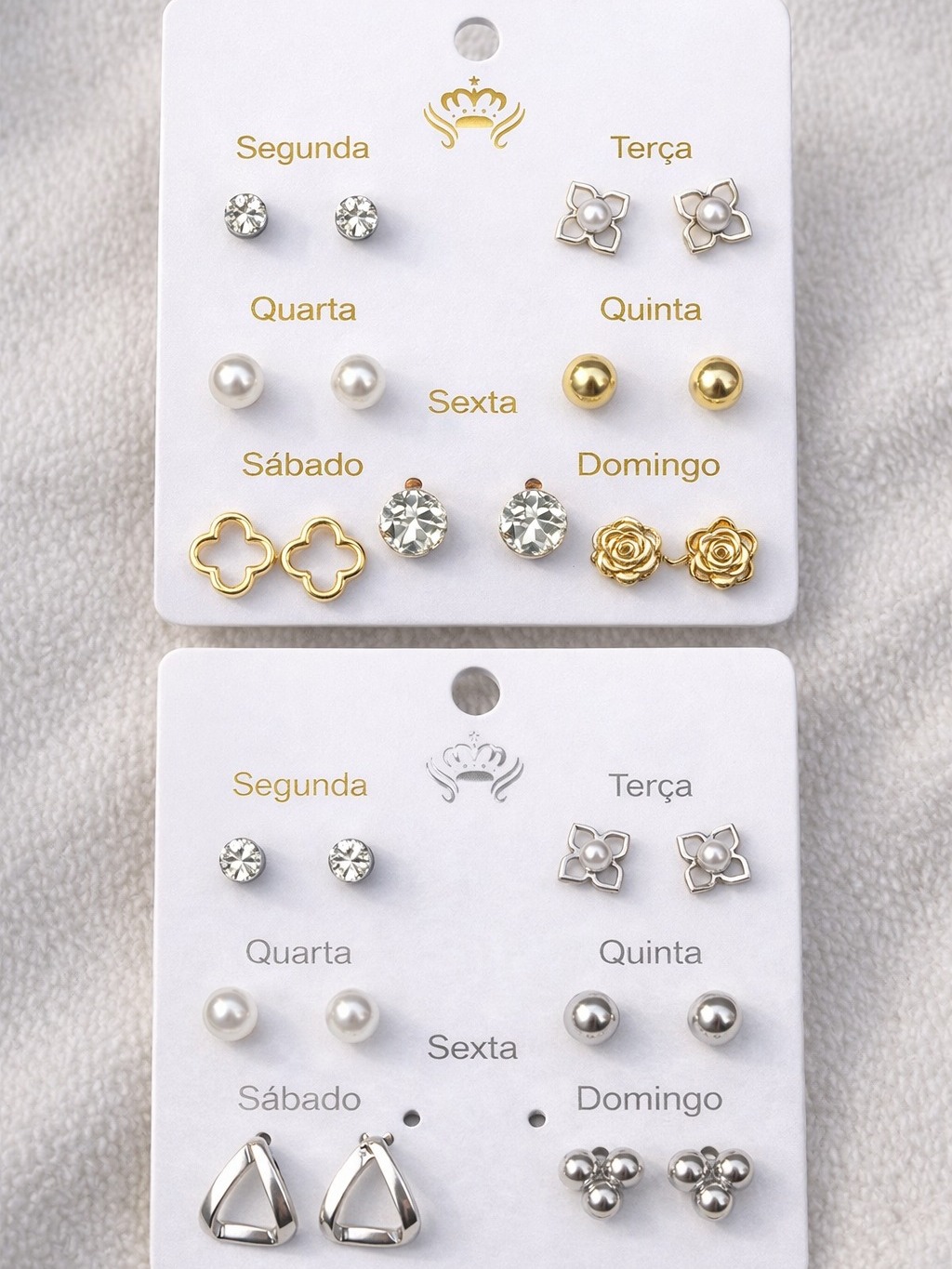 Conjunto 7 Brinquinhos Feminino Sortido Cartela Dourado Prateado