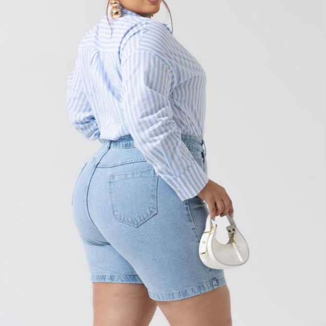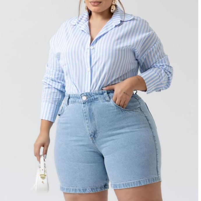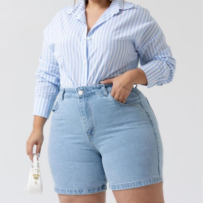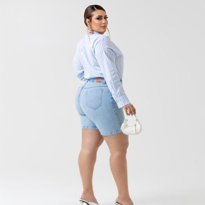Bermuda Meia Coxa Jeans Feminina Plus Size Azul Clara