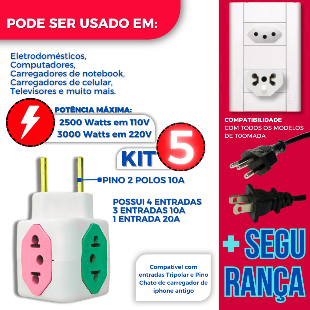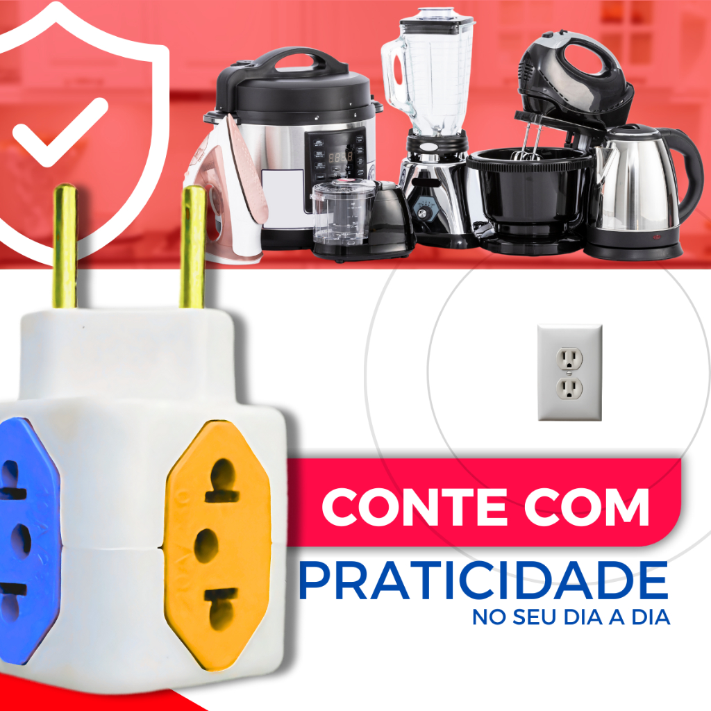 Adaptador de Tomada Benjamim Cubo 10A/20A 4 Tomadas Coloridas