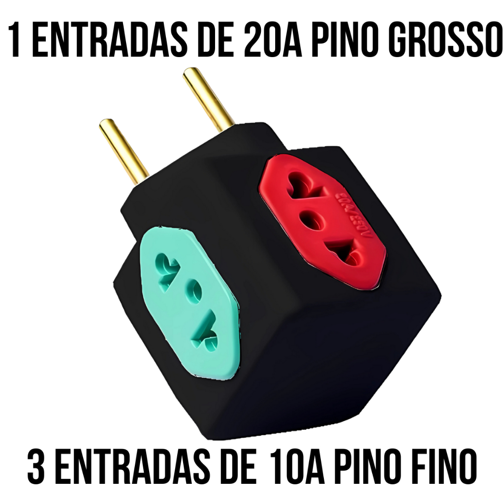 Adaptador de Tomada Benjamim Cubo 4 Tomadas Pino Maciço Resistente 10A/20A