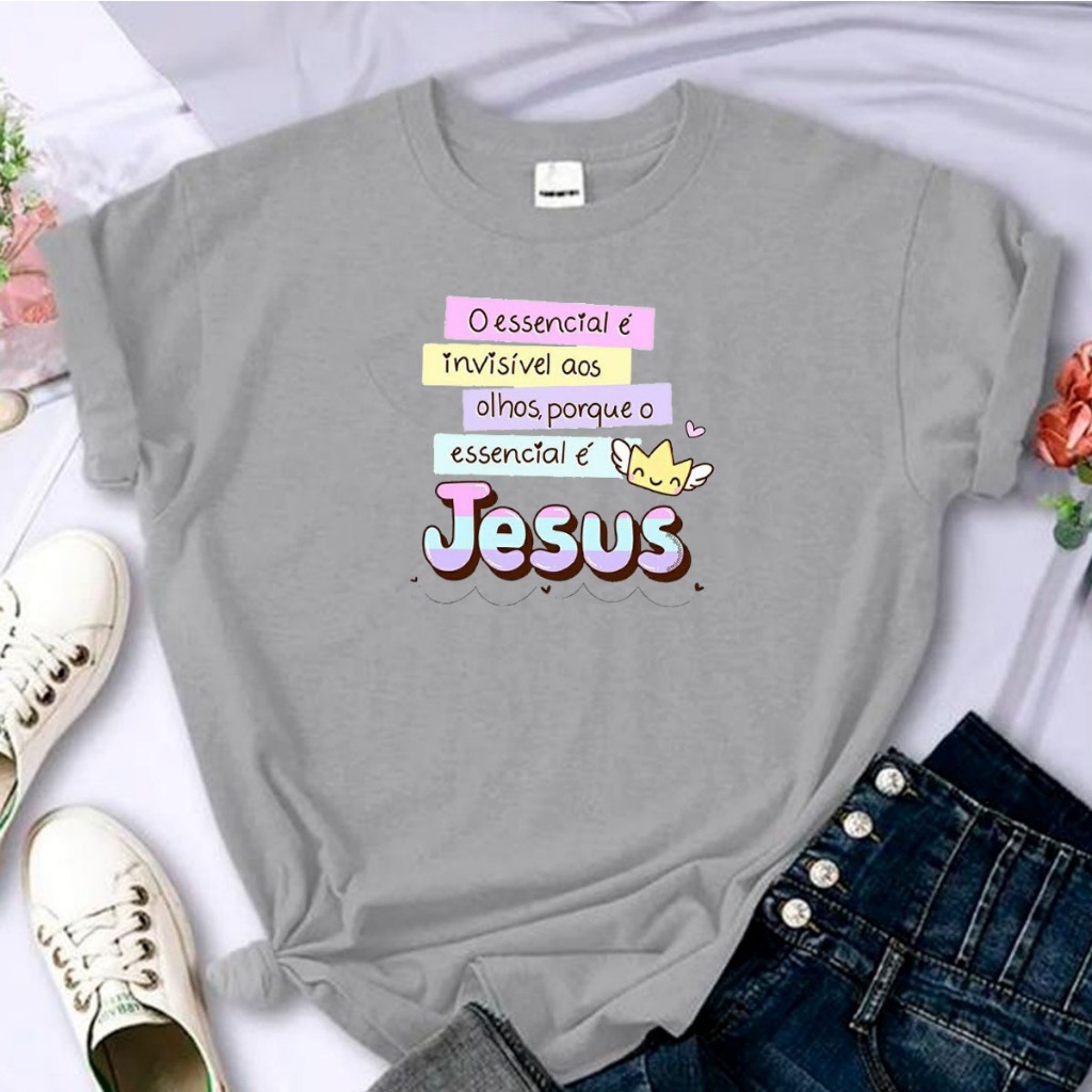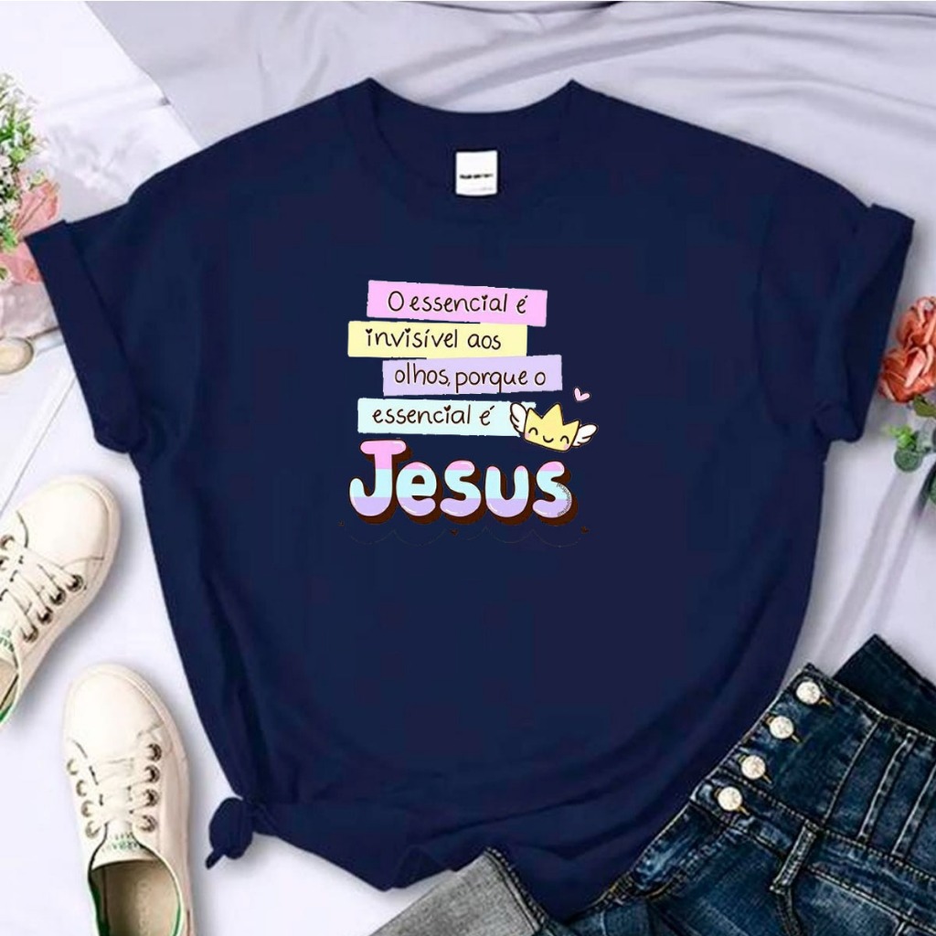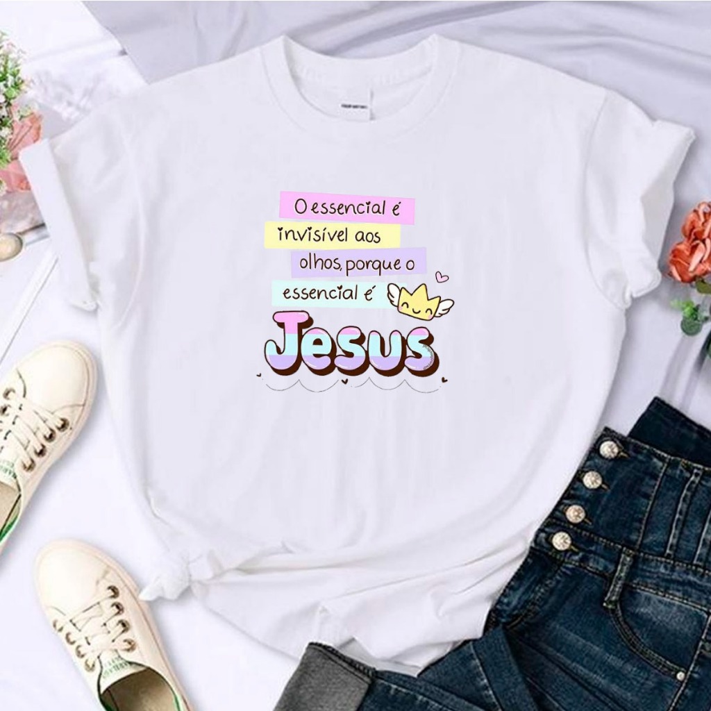 T-Shirt Algodão Religiosa Linda Fofa Frase Jesus Cristo Bíblia Sagrado Yeshua Camisa