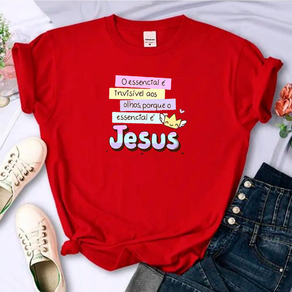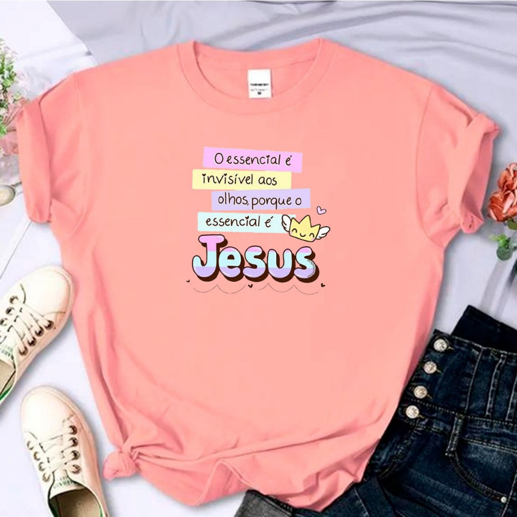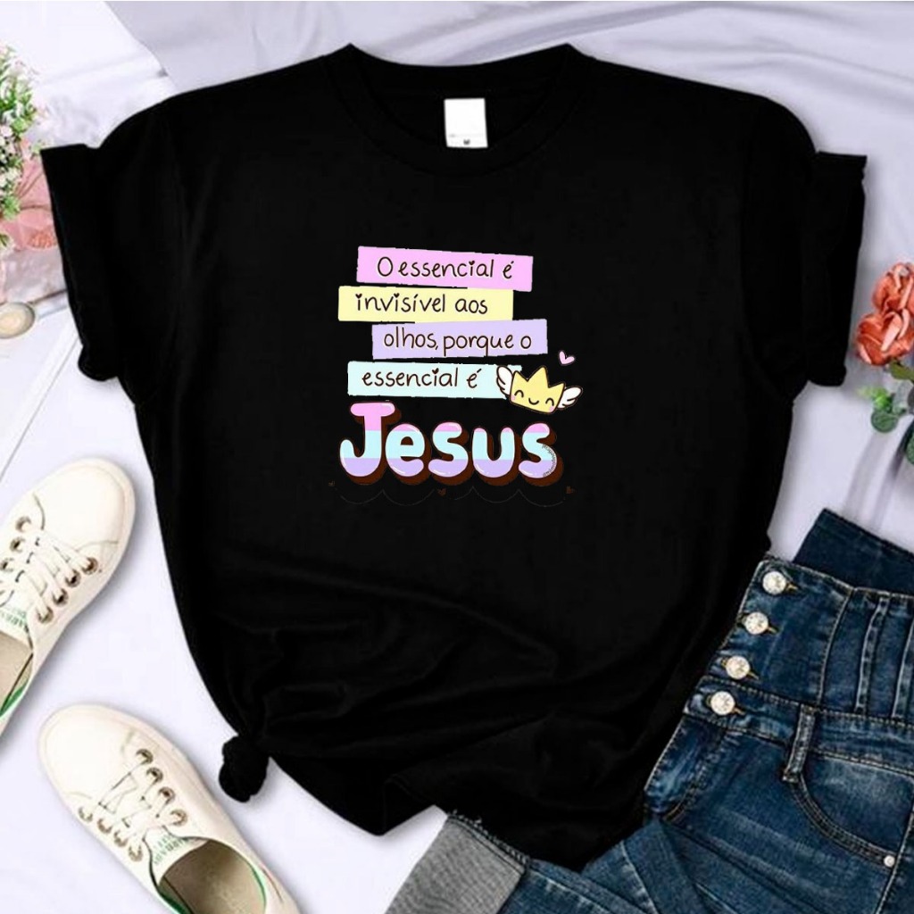 T-Shirt Algodão Religiosa Linda Fofa Frase Jesus Cristo Bíblia Sagrado Yeshua Camisa